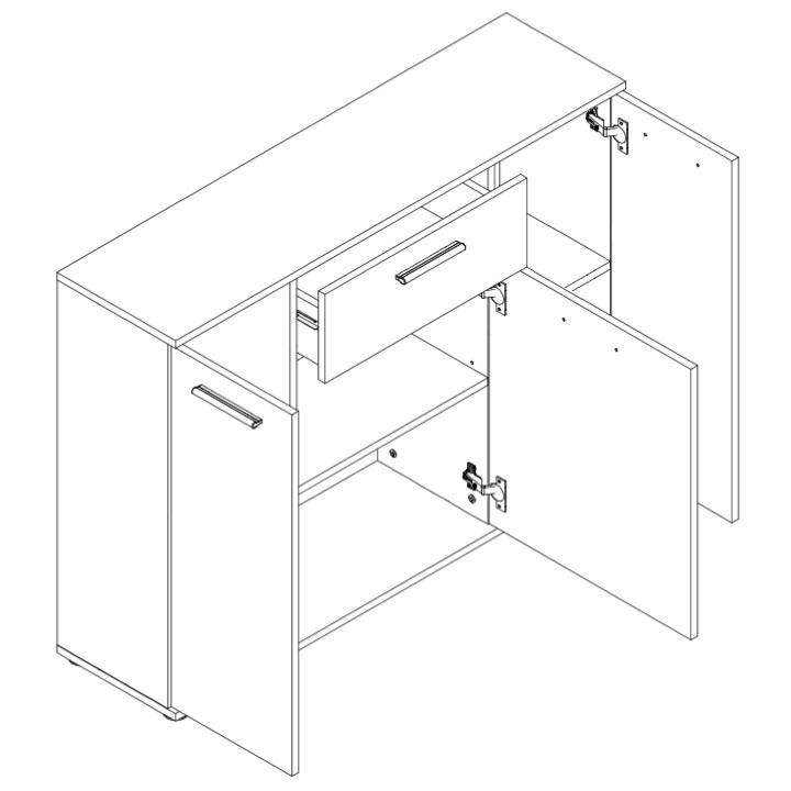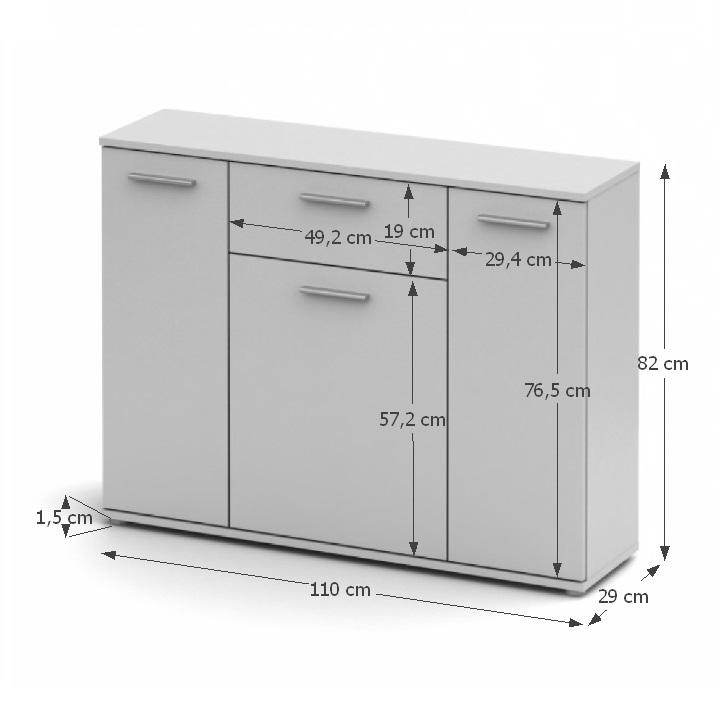 Komoda NOKO-SINGA 35 Materiál: DTD laminovaná Provedení: bílá Rozměry (ŠxHxV): 110x29x82 cm Tloušťka materiálu: 16 mm Dodávané v demontu.