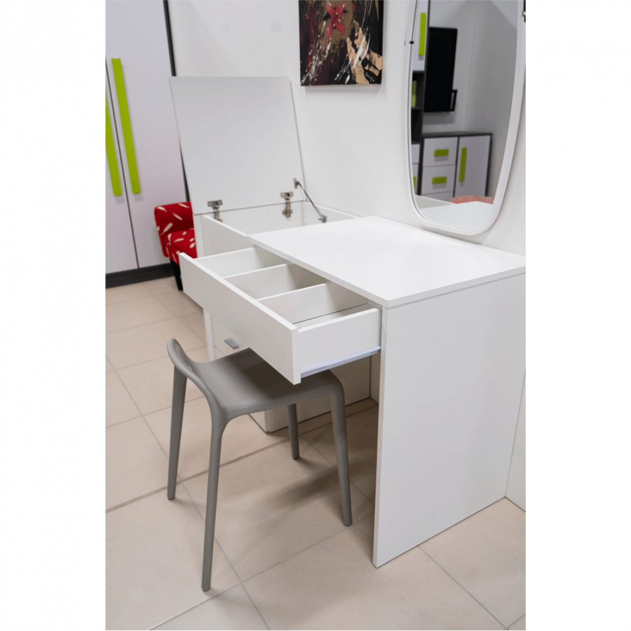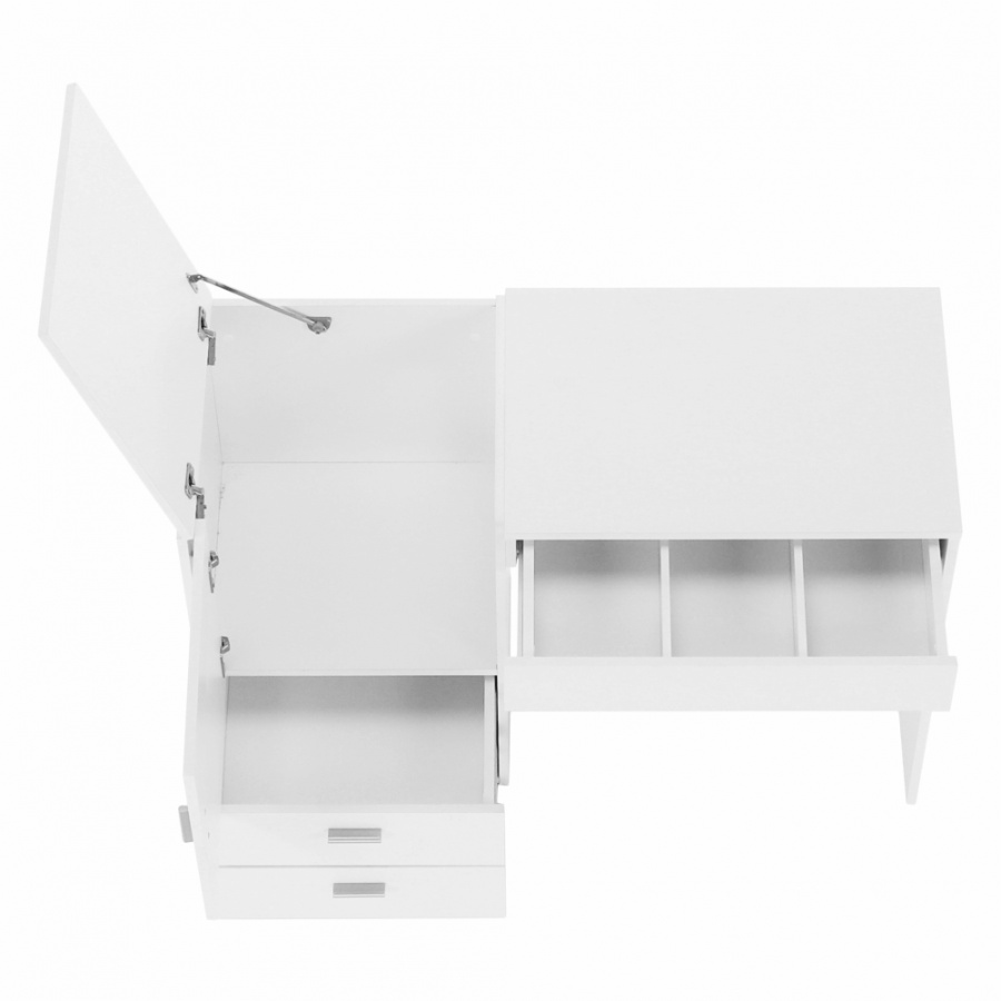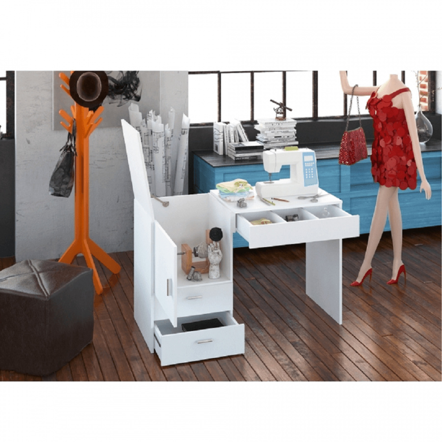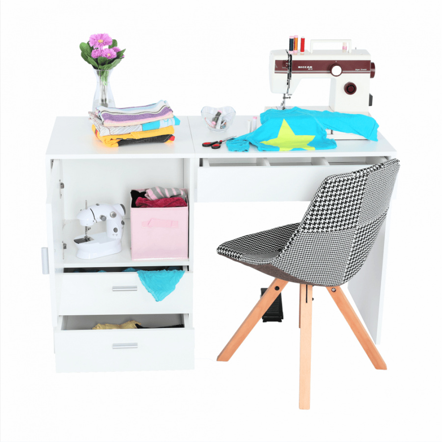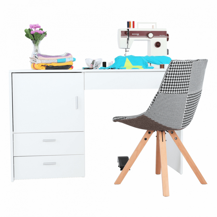 Materiál: DTD laminovaná Barva: bílá Rozměry (ŠxHxV): 120x50x75 cm Tloušťka materiálu korpus: 16 mm S úložným prostorem tři šuplíky skříňka Jako stolek pro švadleny Jak toaletní stolek či psací stůl Stolek s všestranným využitím Kvalitní slovenský výrobek Dodávané v demontu