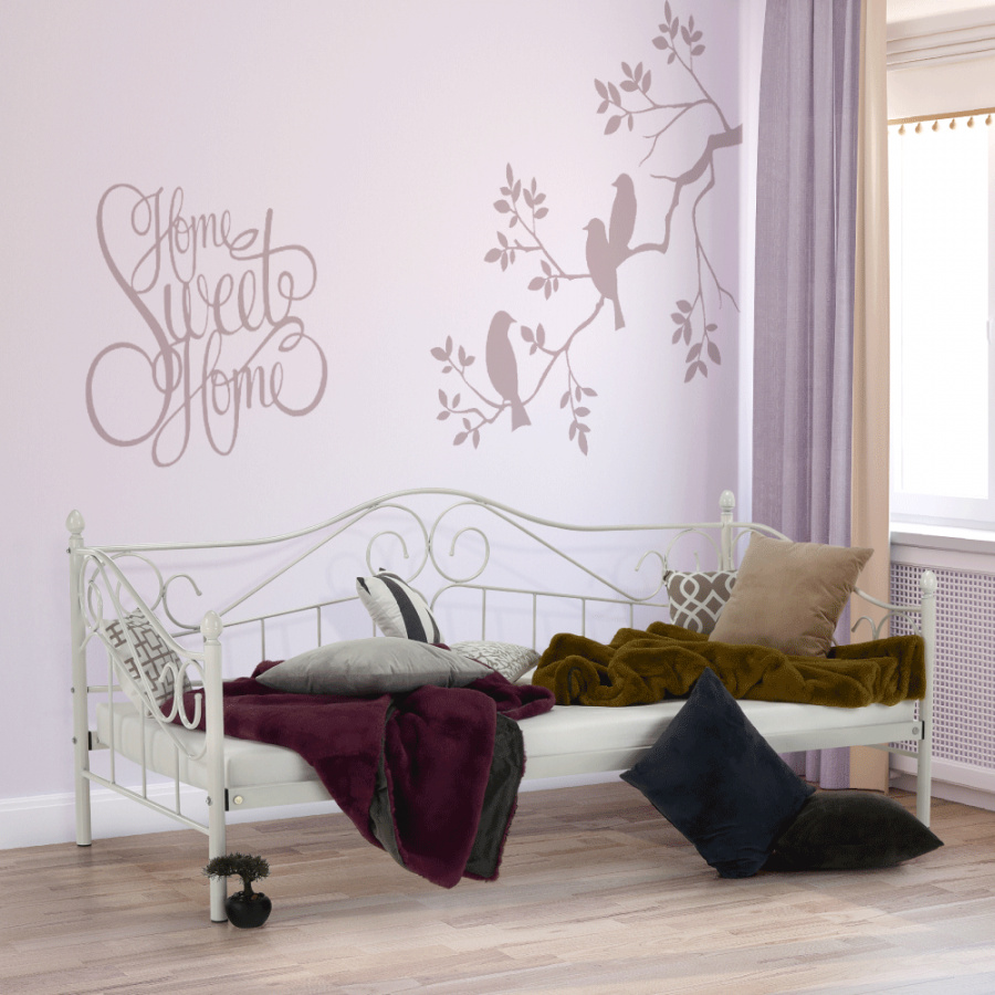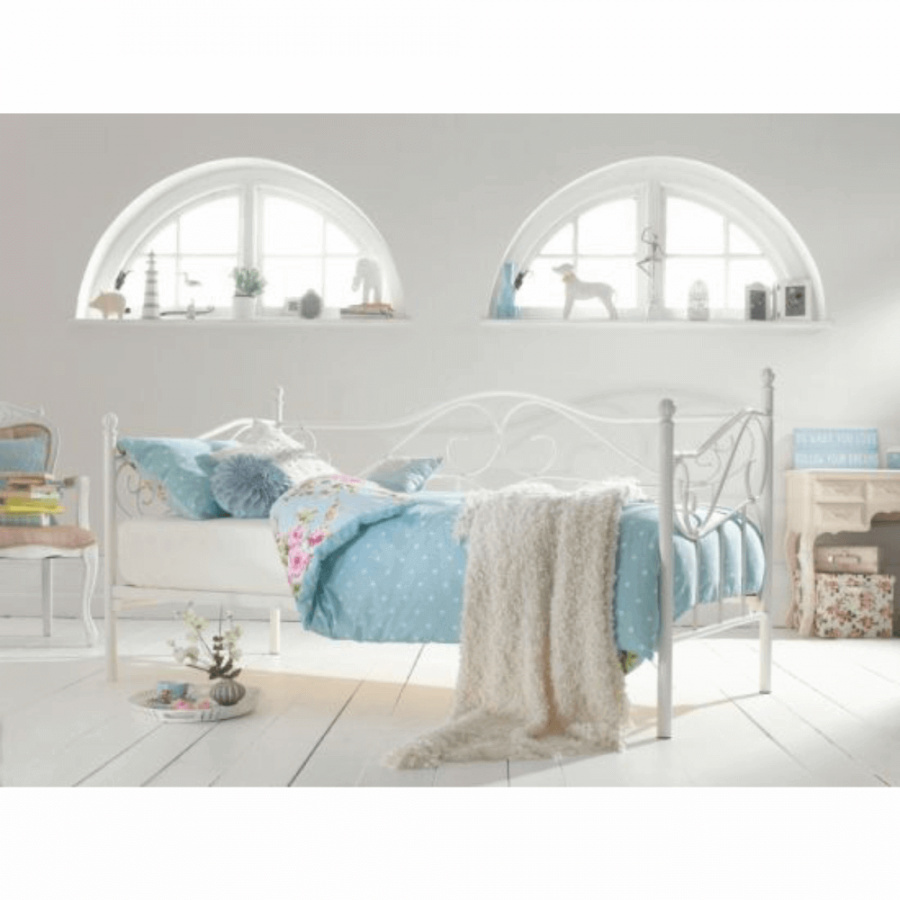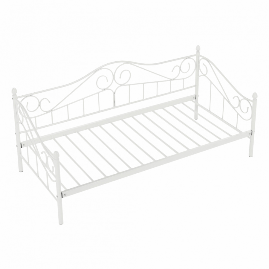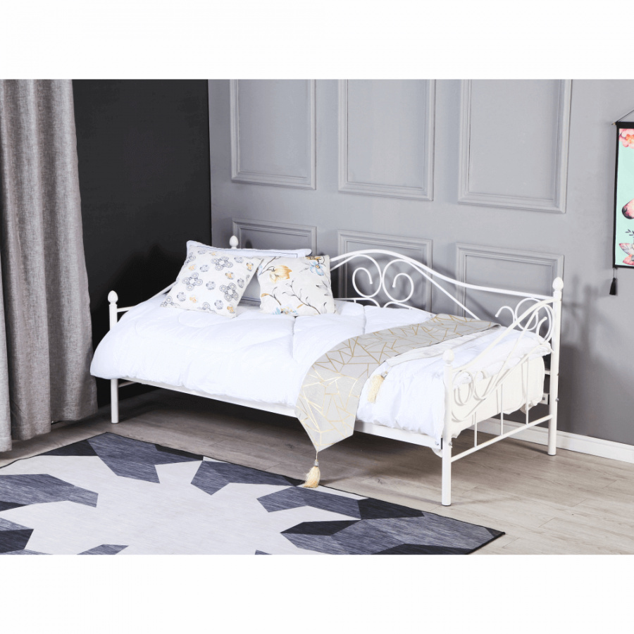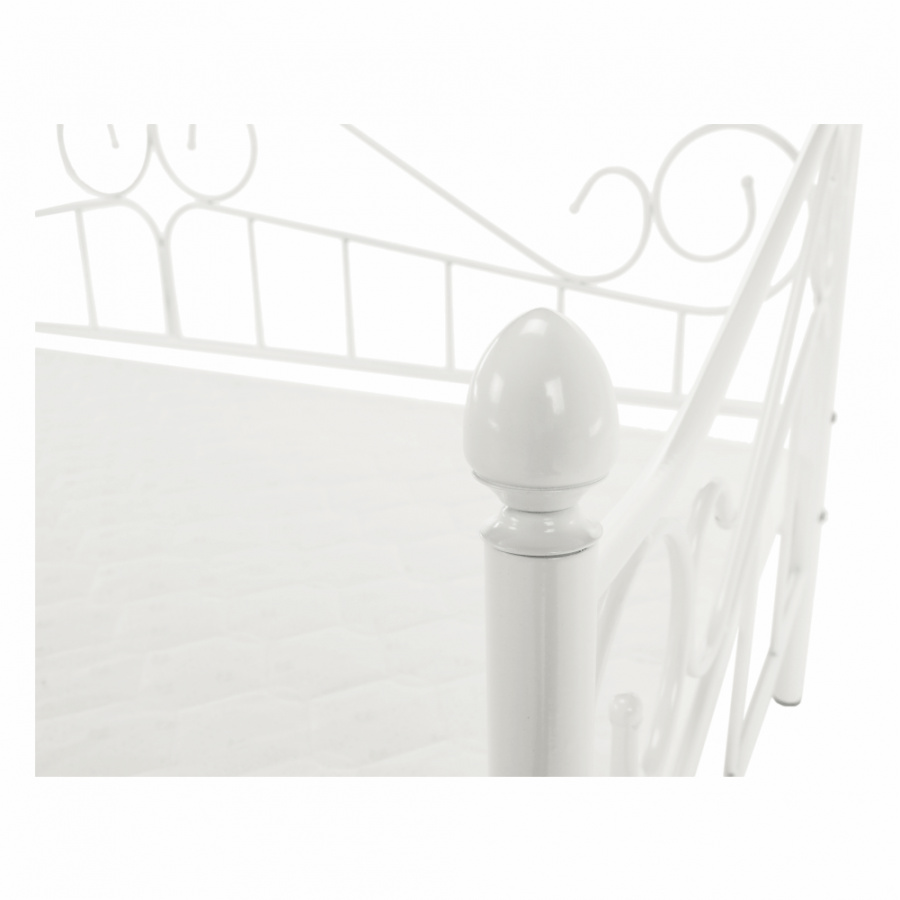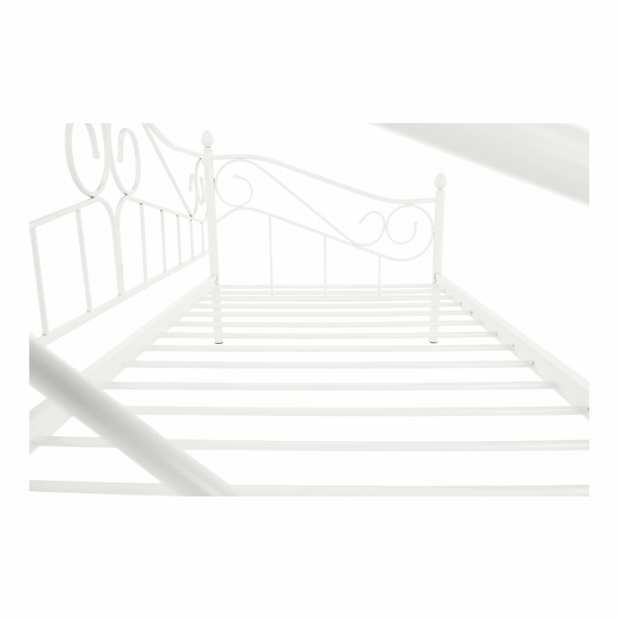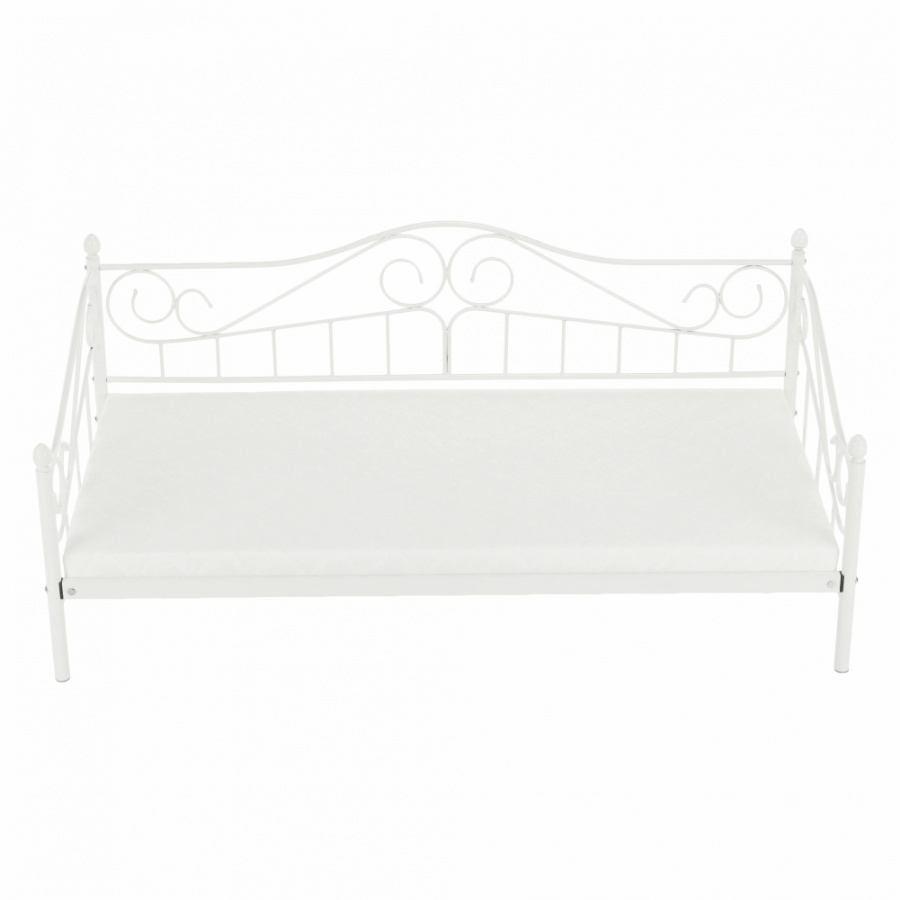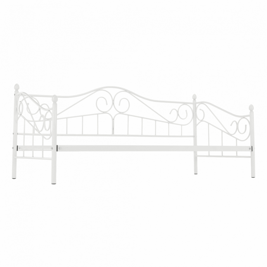 Kovová postel s kovovým roštem, DAINA Materiál: kov Barva: bílá Vnější rozměry postele (ŠxHxV): 207x96x90,5 cm Plocha na spaní: 90x200 cm Výška po rošt: 30 cm Dodávána s kovovým roštem Dodávána bez matrace Dodávané v demontu Možnost dokoupení matrace s rozměrem 90x200 cm