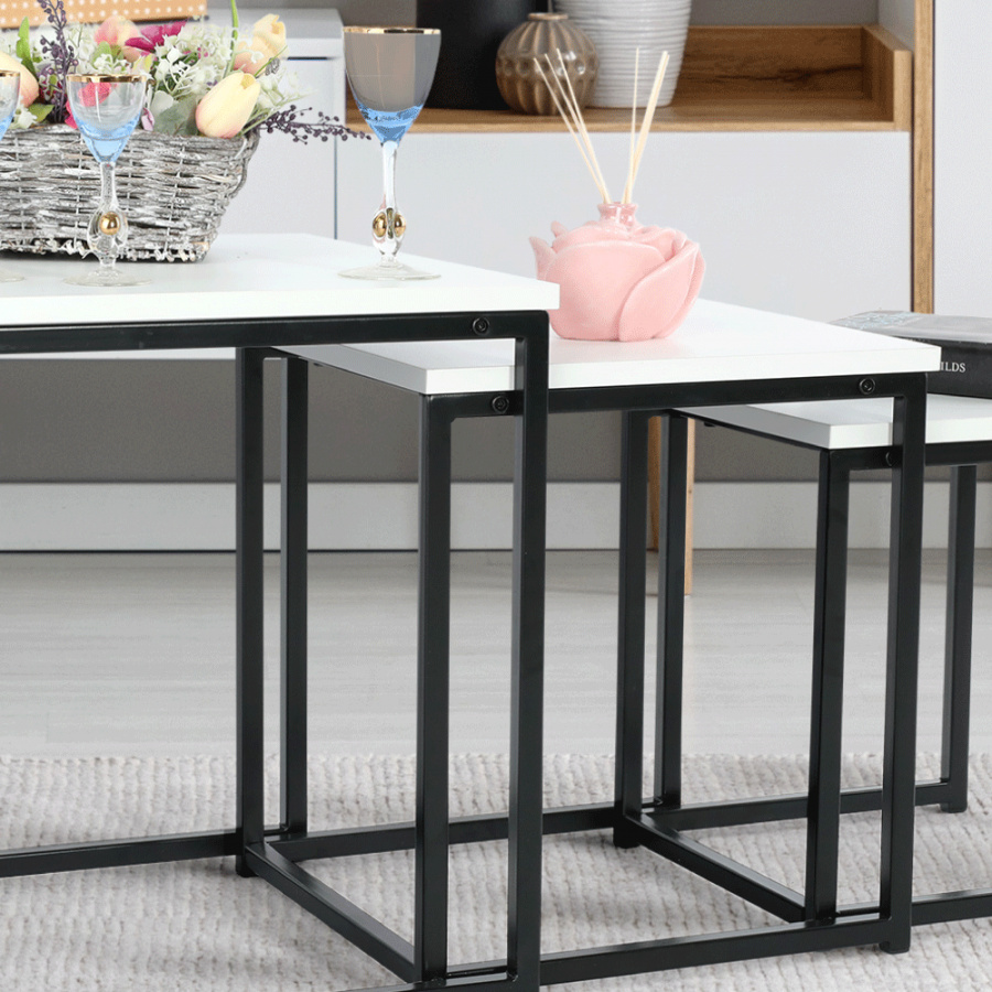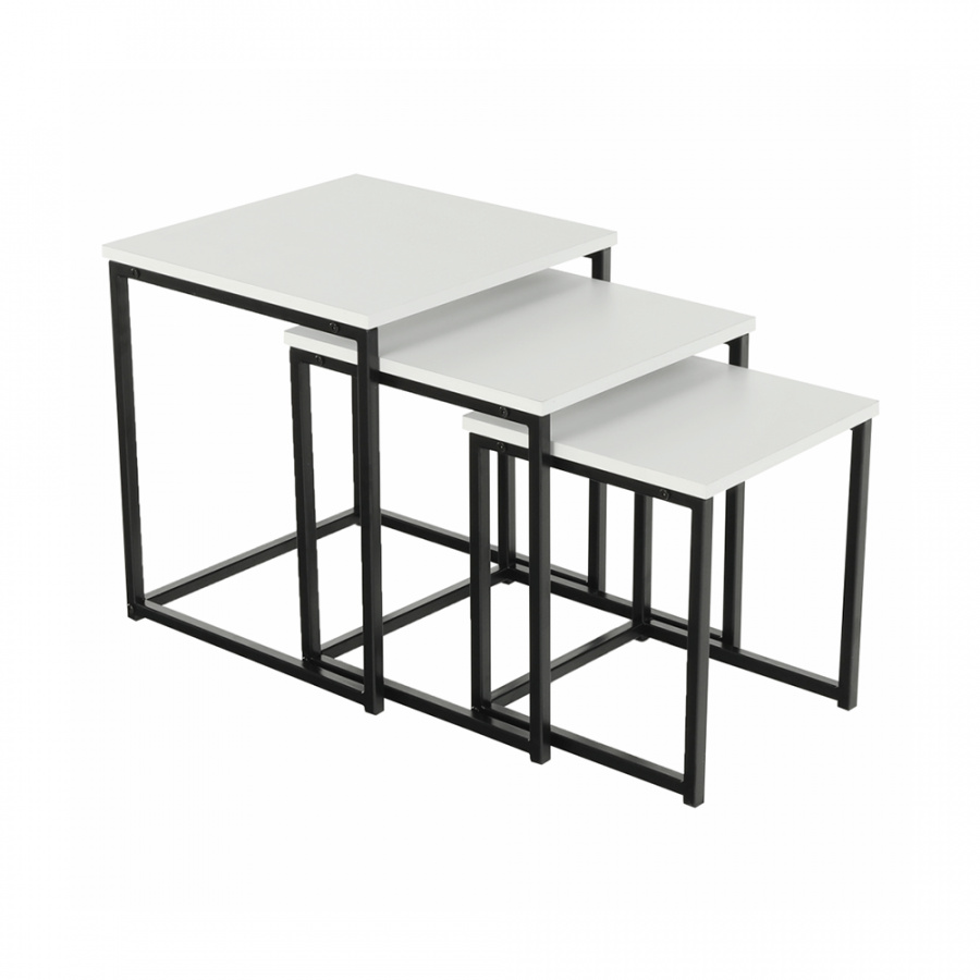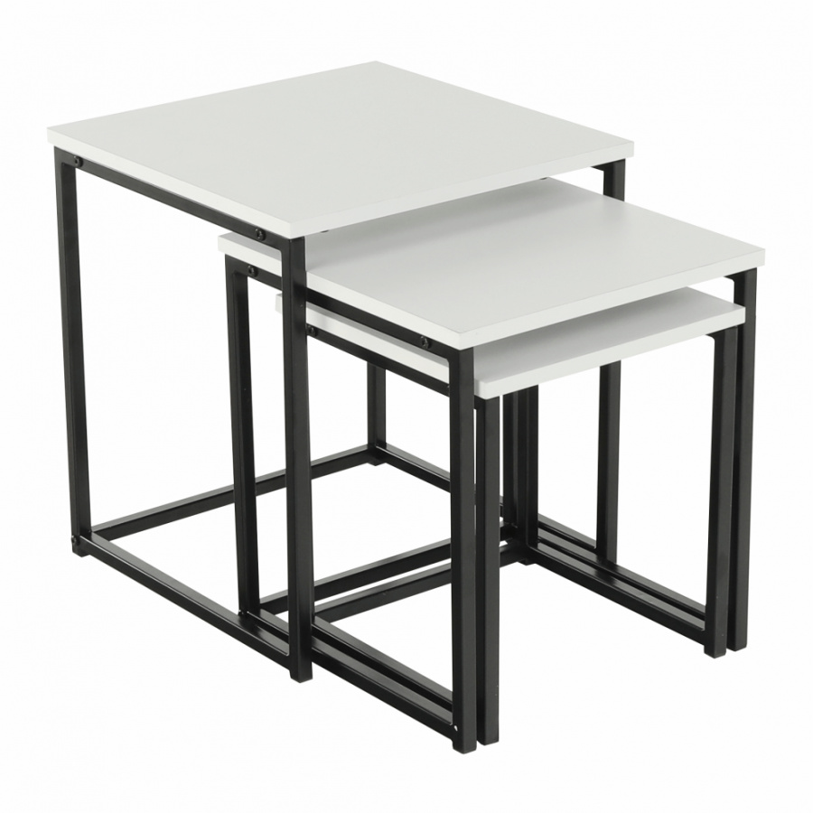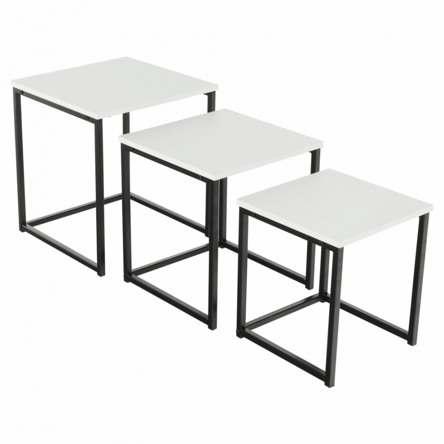 Set 3 konferenčních stolků, bílá matná / černá, KASTLER TYP 3