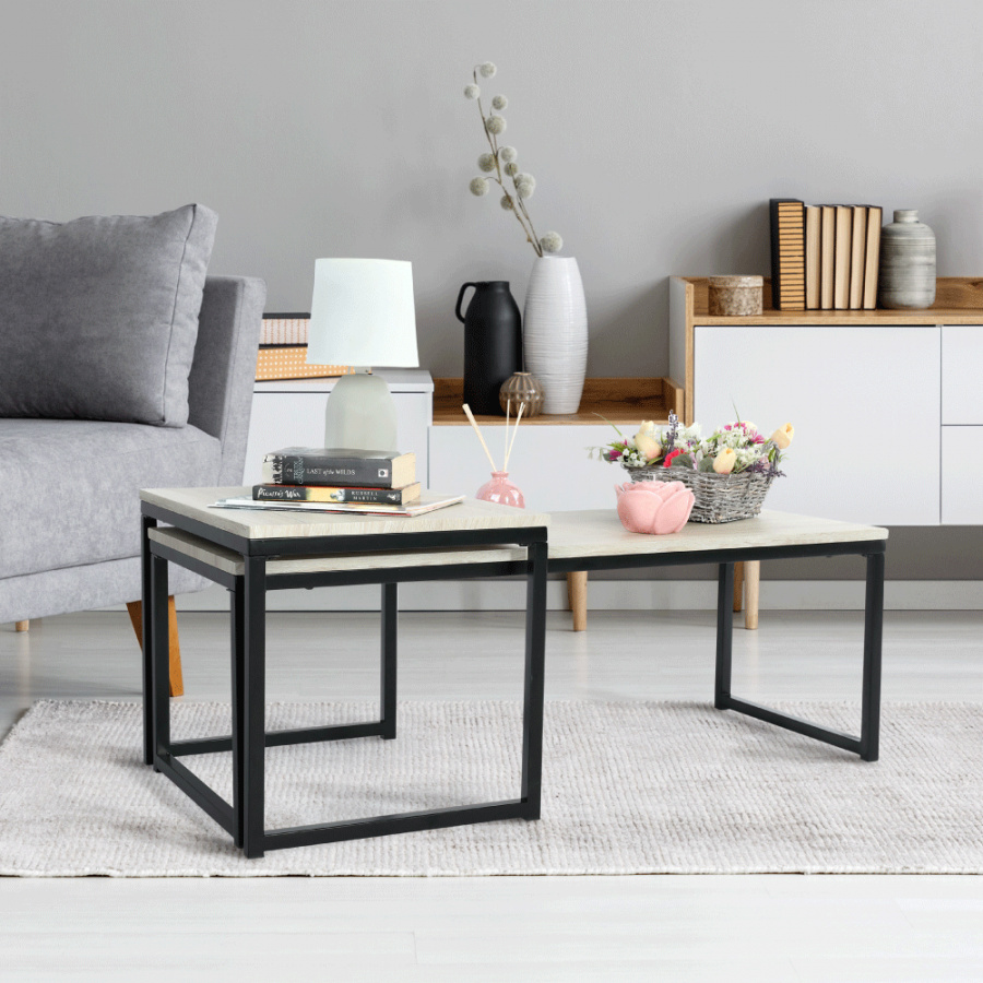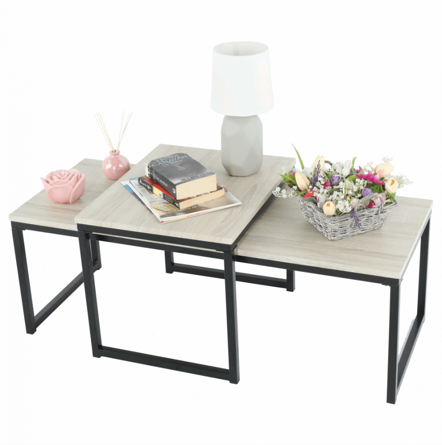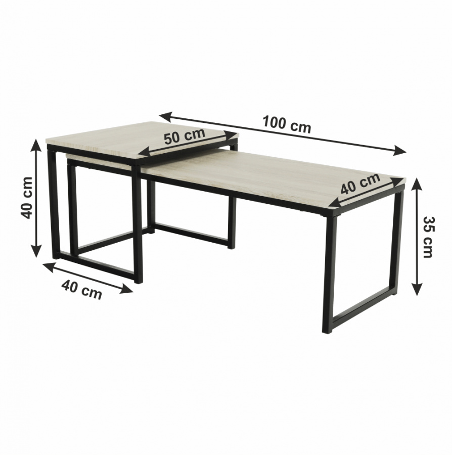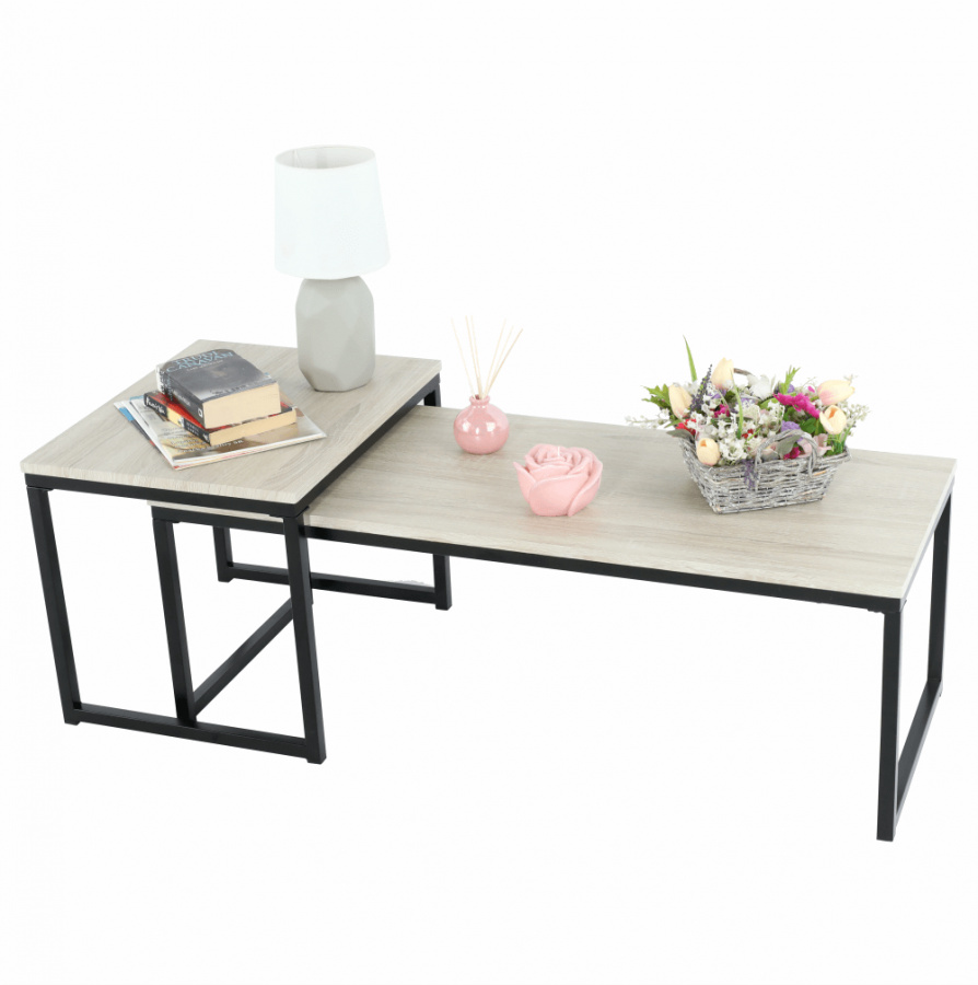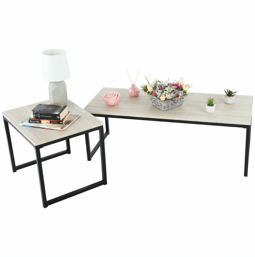 Set 2 konferenčních stolků, dub sonoma / černá, KASTLER TYP 2
