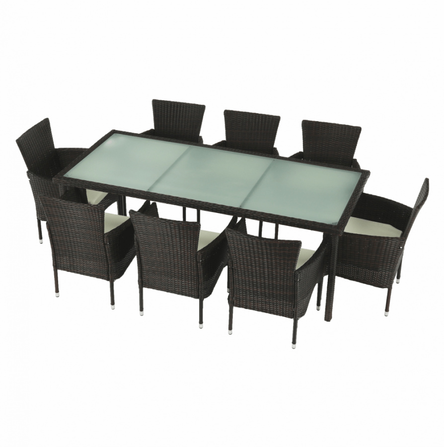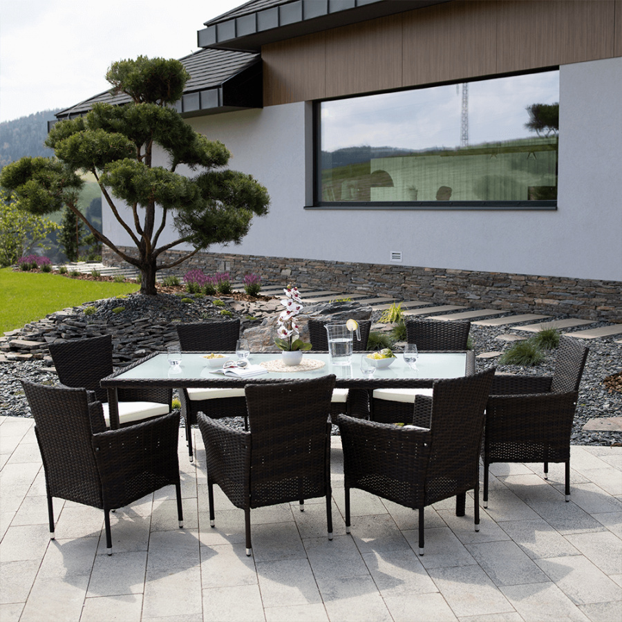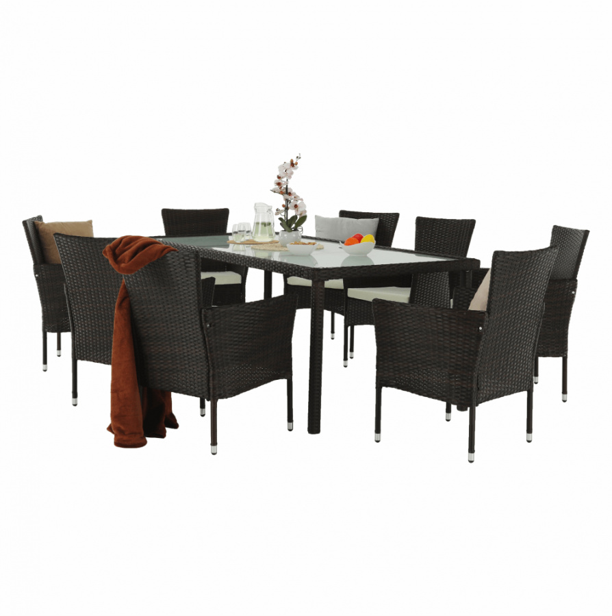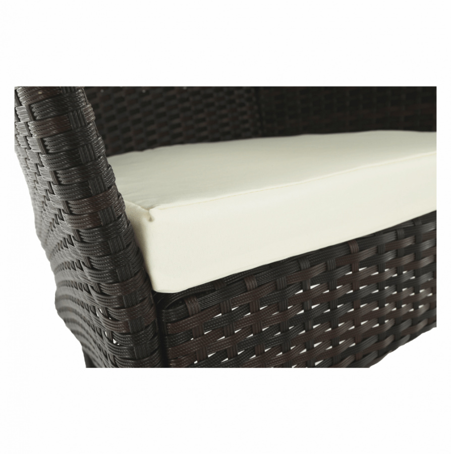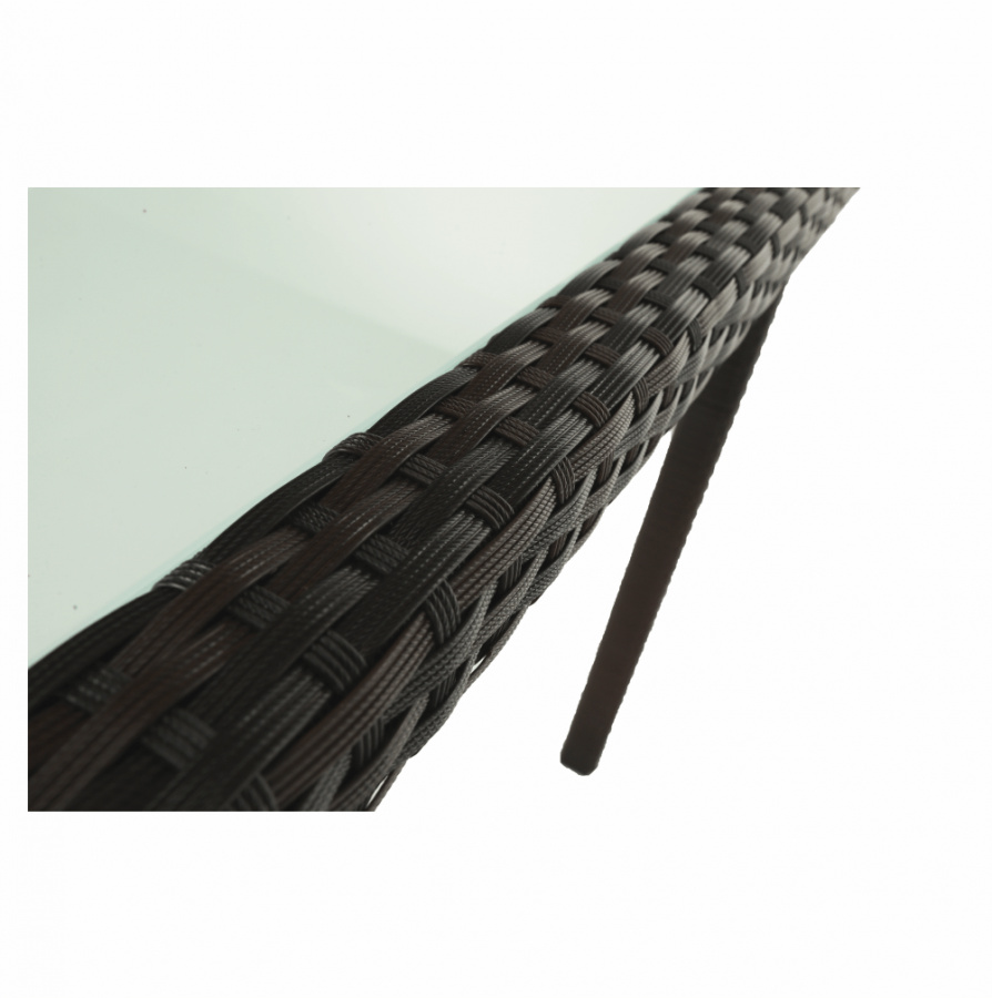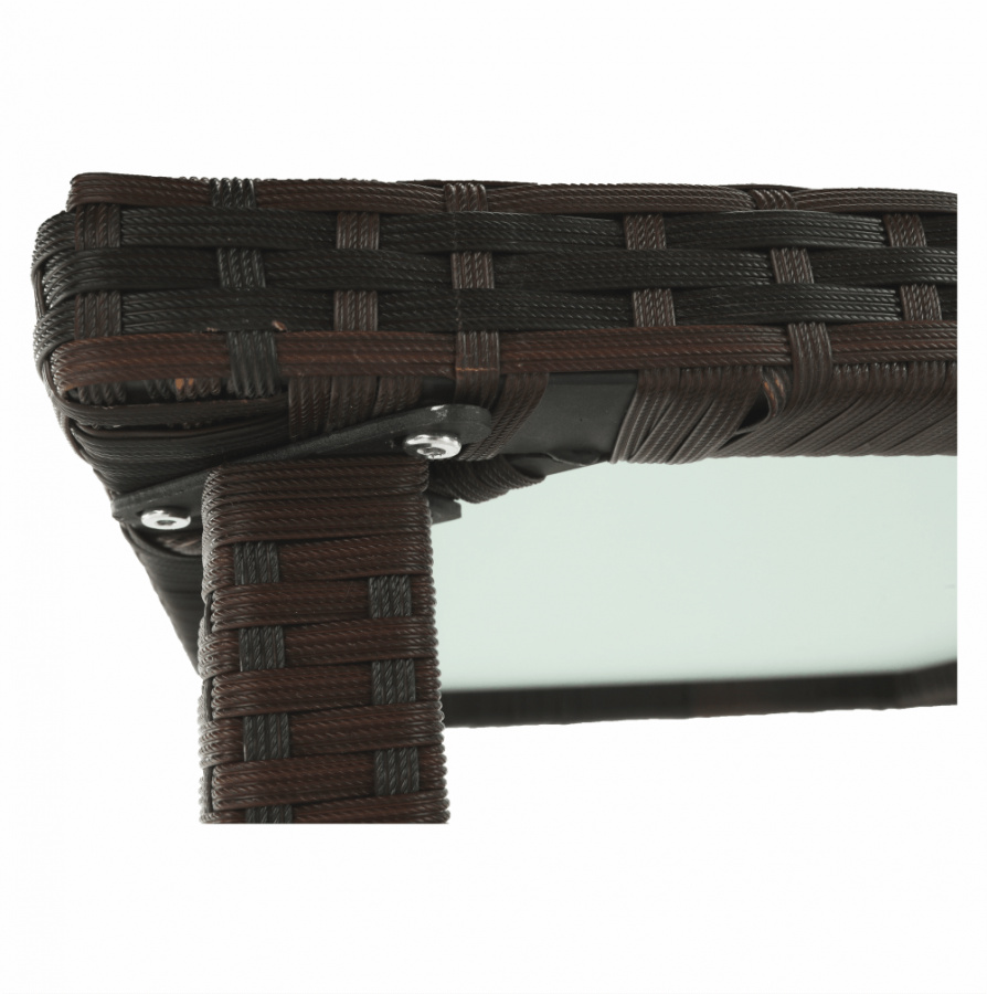 Materiál: umělý ratan / ocel / tvrzené sklo / látka