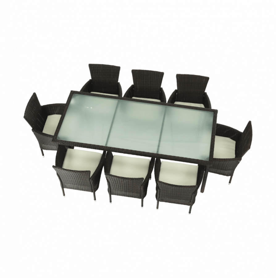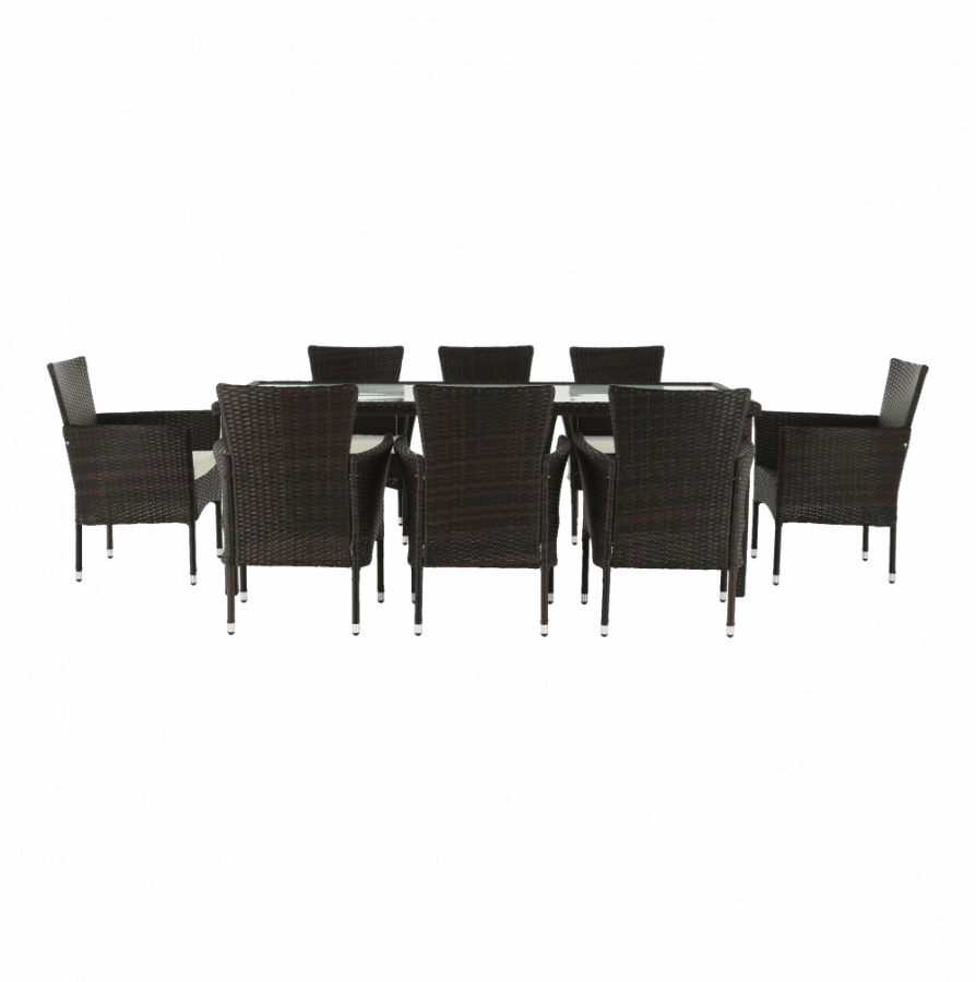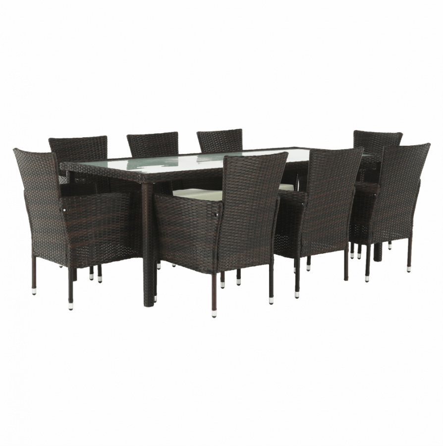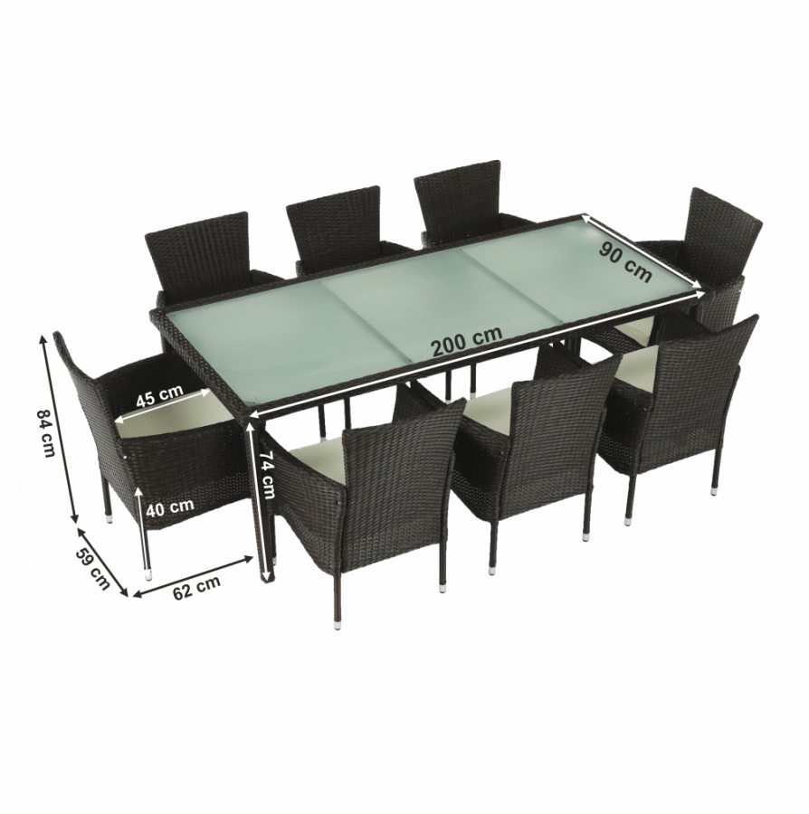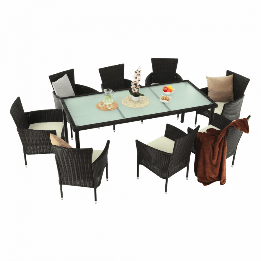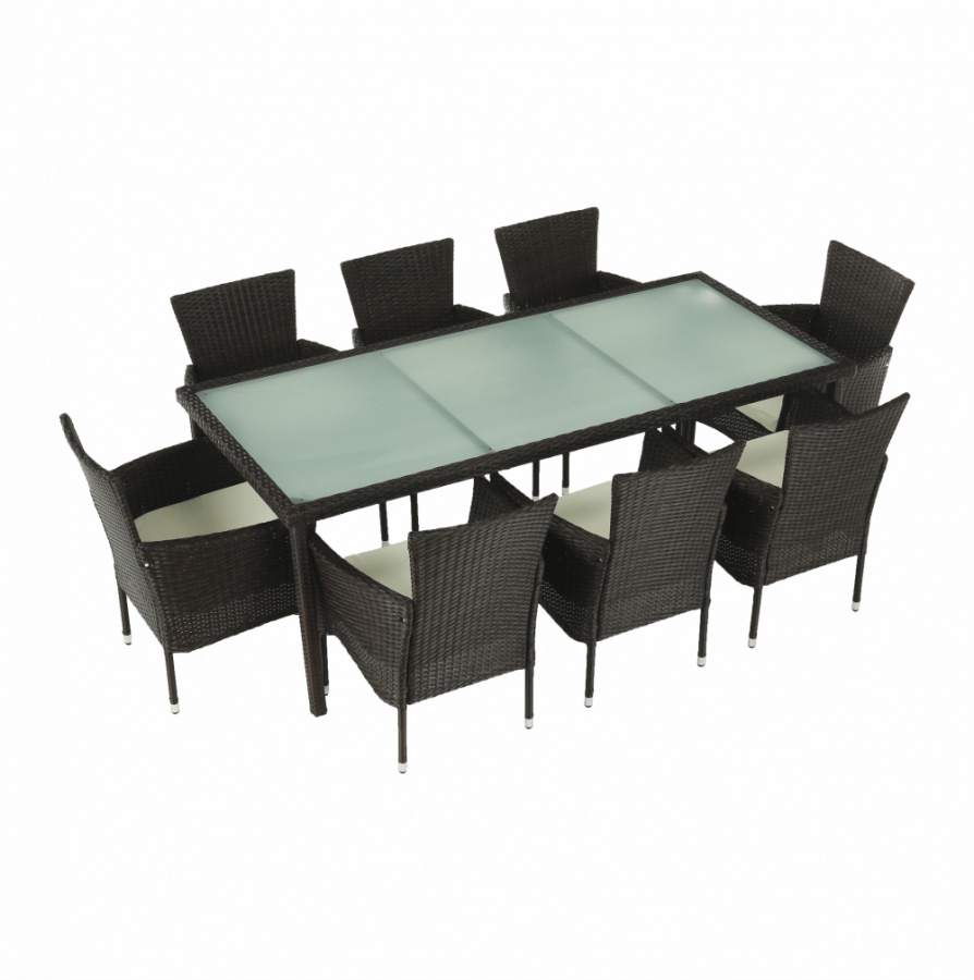 Materiál: umělý ratan / ocel / tvrzené sklo / látka