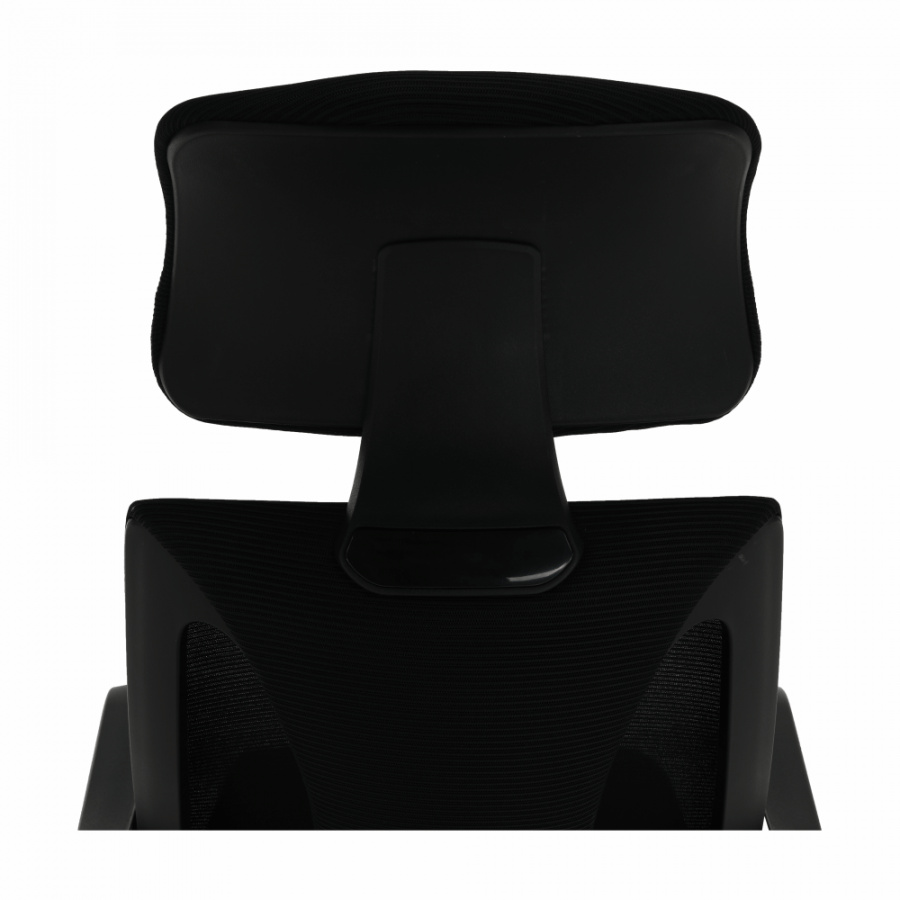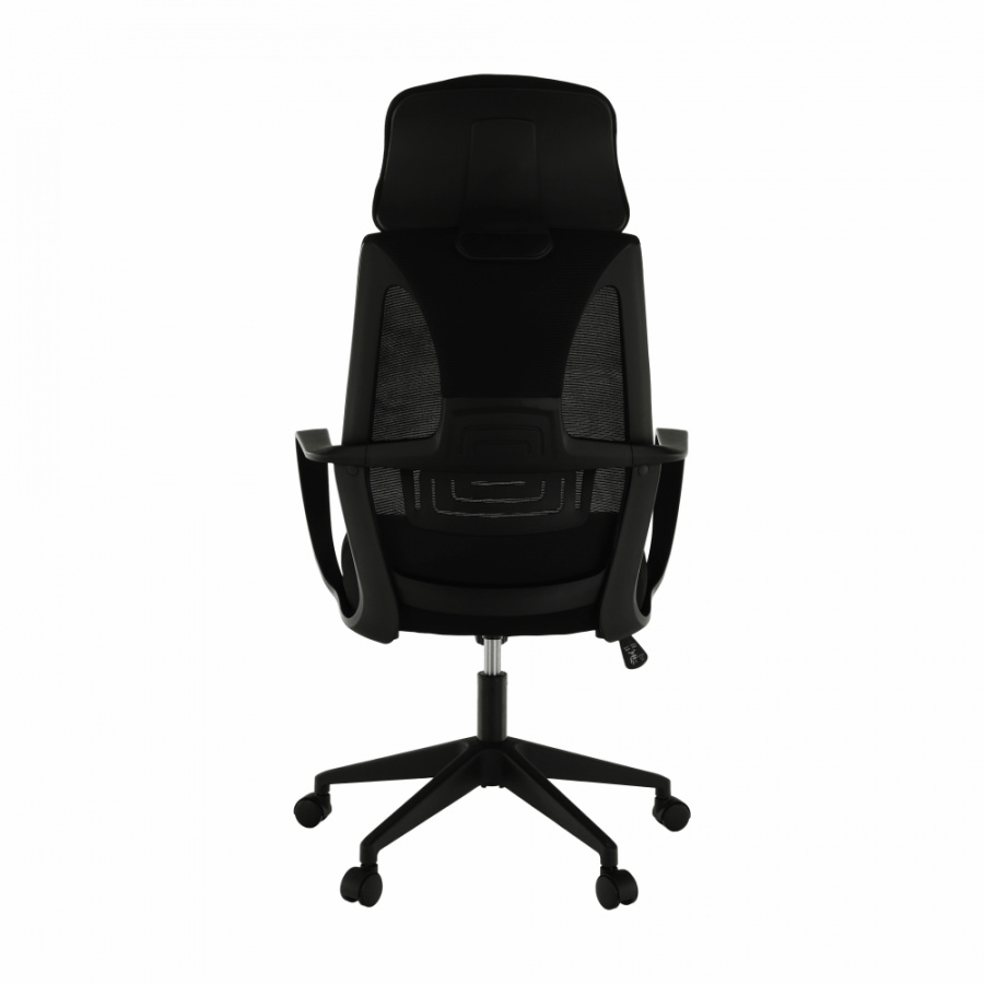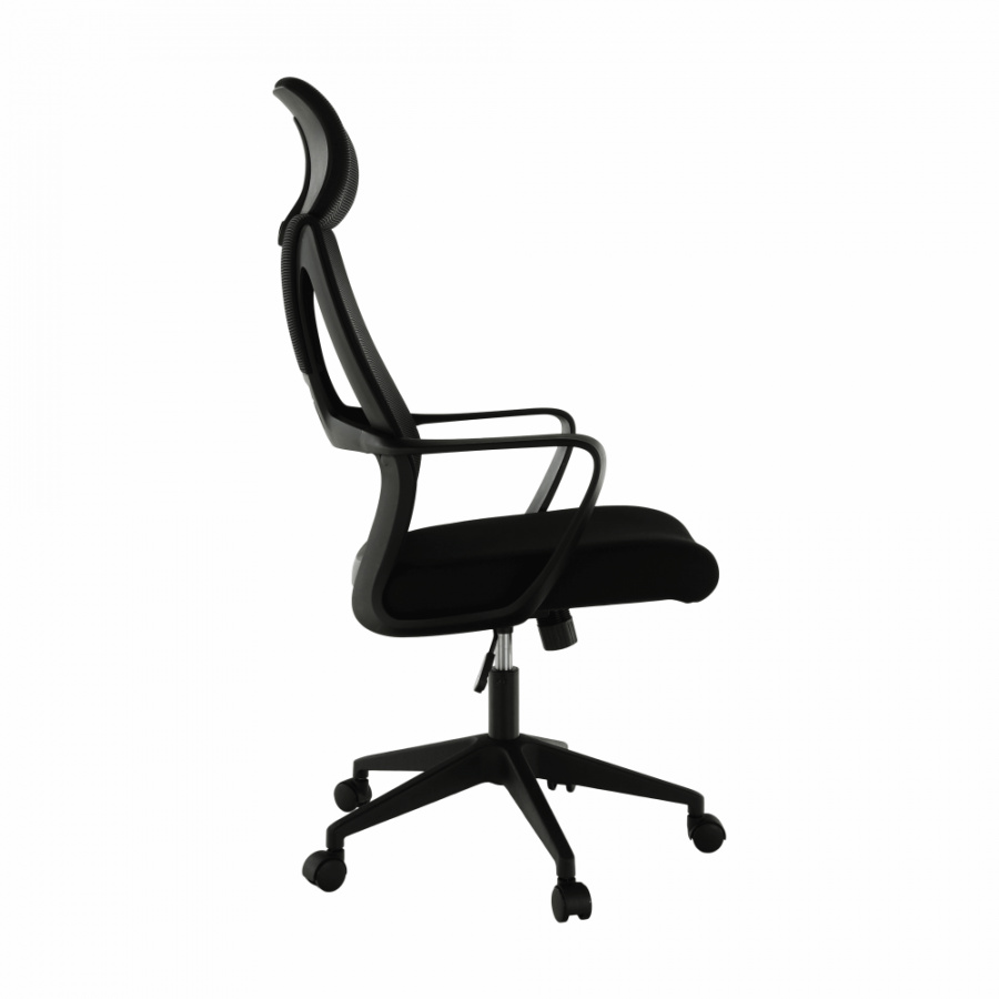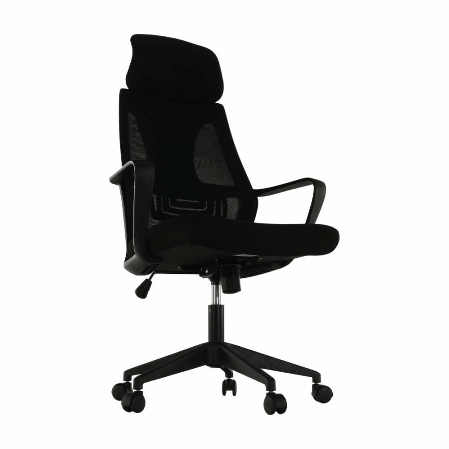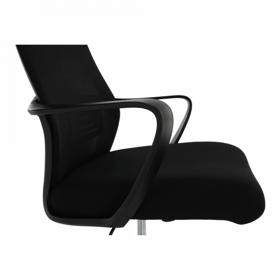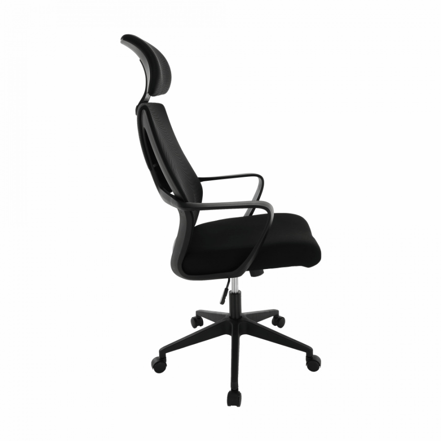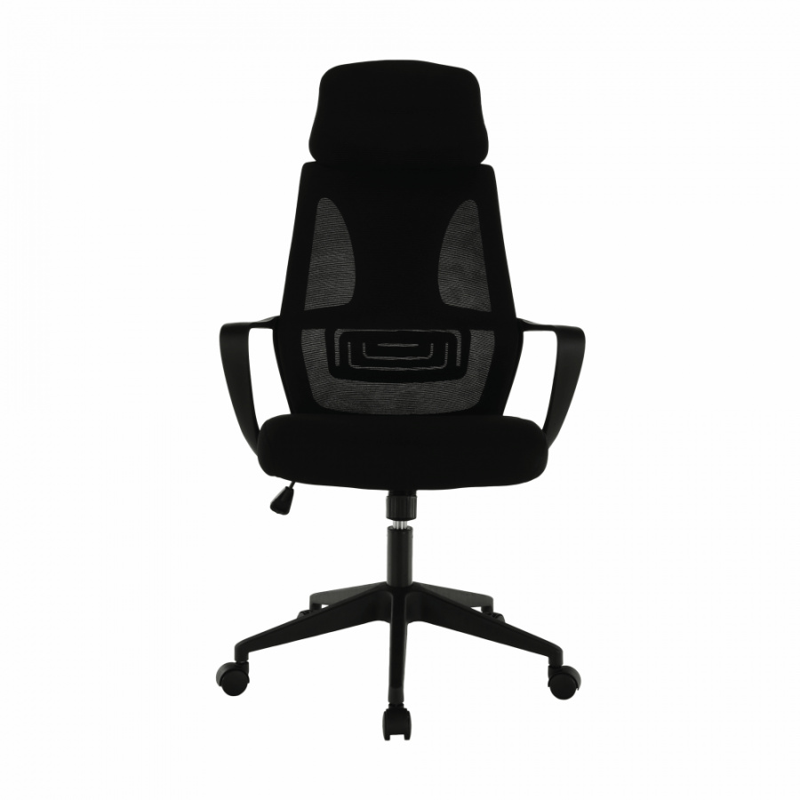 Materiál: látka / plast Barva: černá Rozměry (ŠxHxV): 64x63x118-126 cm Nastavitelná výška sedu: 45-53 cm Hloubka sedu: 52 cm Šířka sedu: 50 cm Výška zádové opěrky: 76-79,5 cm Šířka zádové opěrky: 49 cm Nosnost: 110 kg S opěrkou hlavy S opěrkou na ruce mechanismus houpání plastová podstava Dodávané v demontu