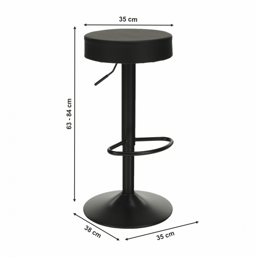 Barová židle PONGO Materiál: ekokůže / kov Barva: černá Rozměry (ŠxHxV): 35x38x63-84 cm Výška sedu: 63-84 cm Hloubka sedu: 35 cm Šířka sedu: 35 cm Nosnost 110 kg Dodávané v demontu.