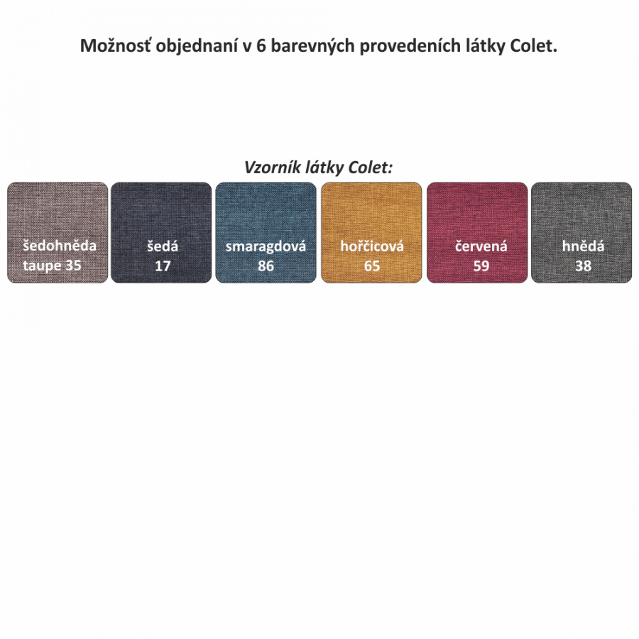 Možnost objednání iv jiných provedeních látky Colet. Doba dodání 14-17 týdnů.