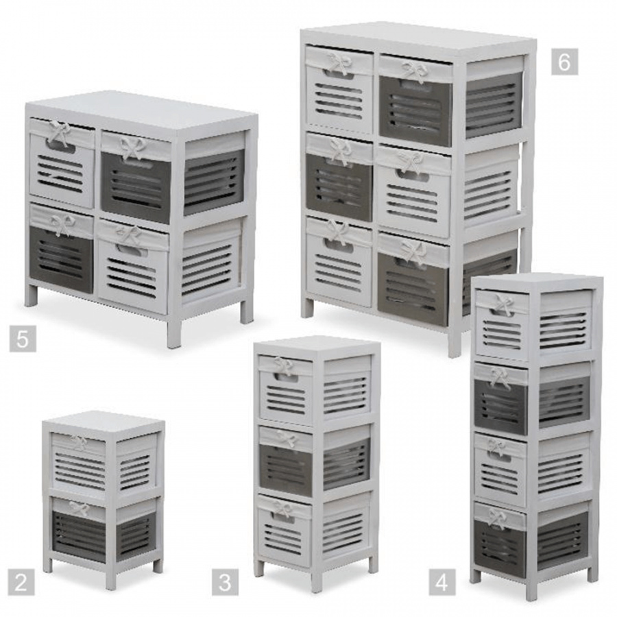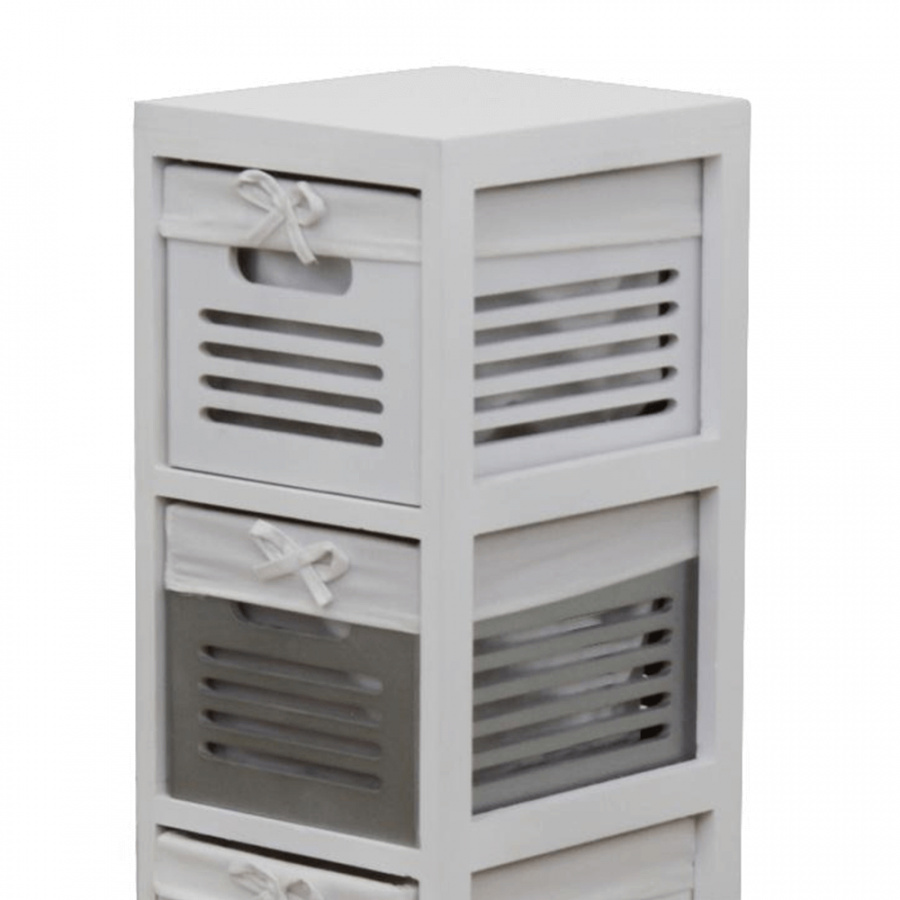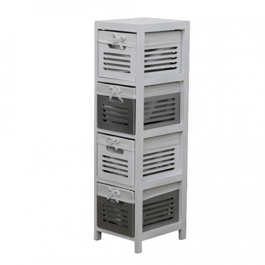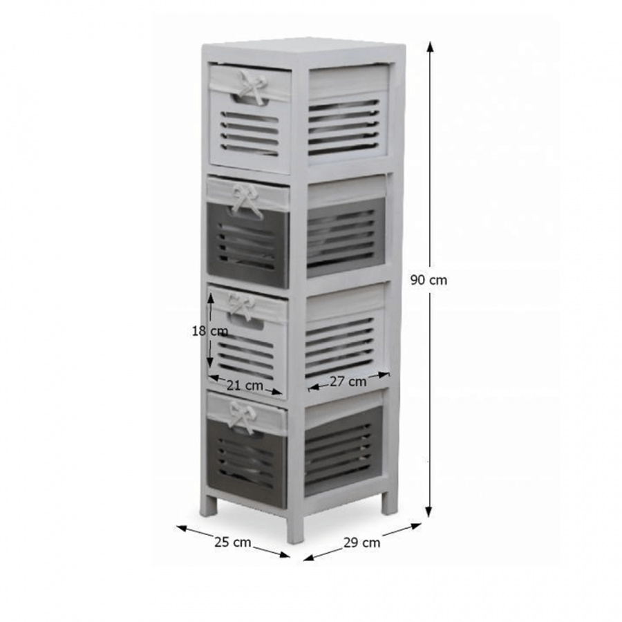 4 šuplíková bílá komoda s pevným rámem BIBI 4 Materiál: dřevo Barva: bílá / šedá Rozměry (ŠxHxV): 25x29x90 cm Dodávané v monte.