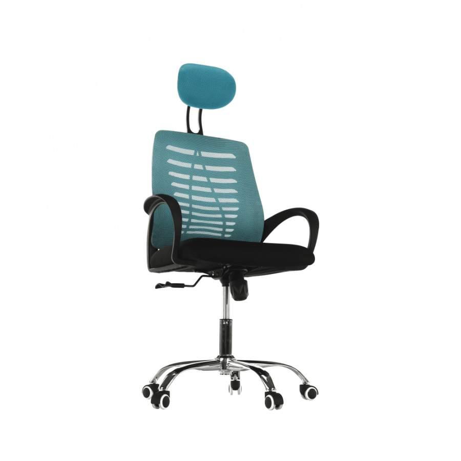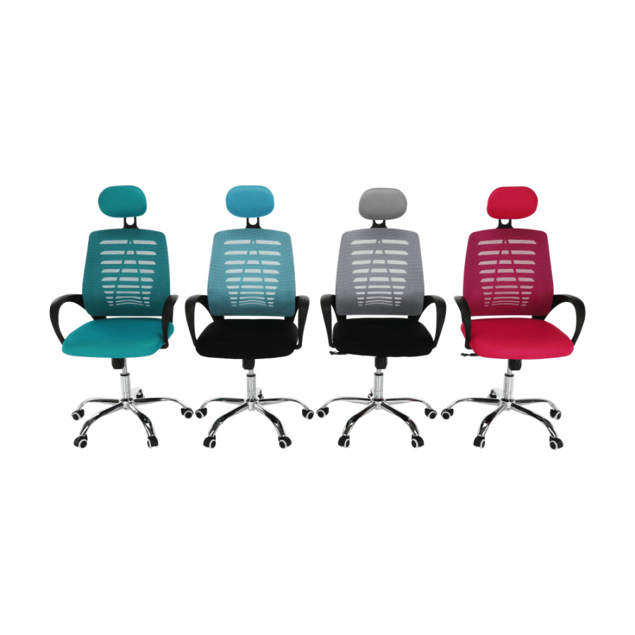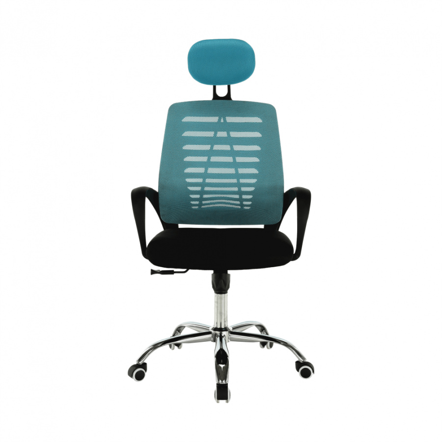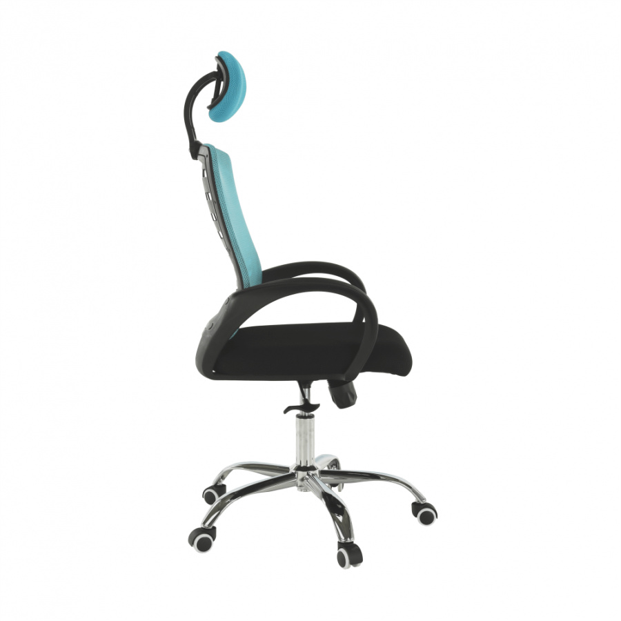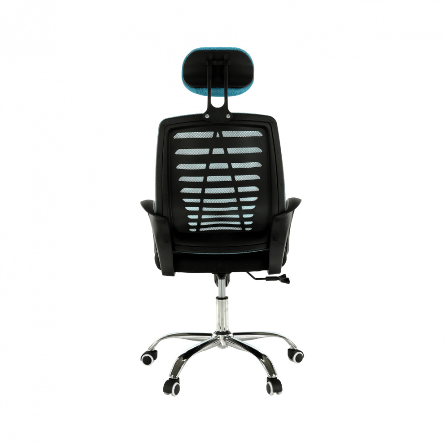 Materiál: látka / kov Barva: modrá / černá Rozměry (ŠxHxV): 65x59x112-124 cm Nastavitelná výška sedu: 45-55 cm Hloubka sedu: 48 cm Šířka sedu: 49 cm Šířka zádové opěrky: 46 cm Výška zádové opěrky (bez opěrky hlavy): 49 cm Nosnost: 110 kg S chromovou podstavou. Pogumované kolečka vhodné na dřevěné nebo plovoucí podlahy. Dodávány v demontu.
