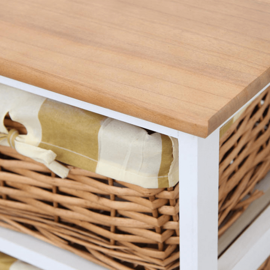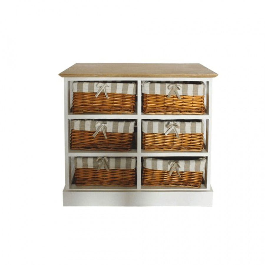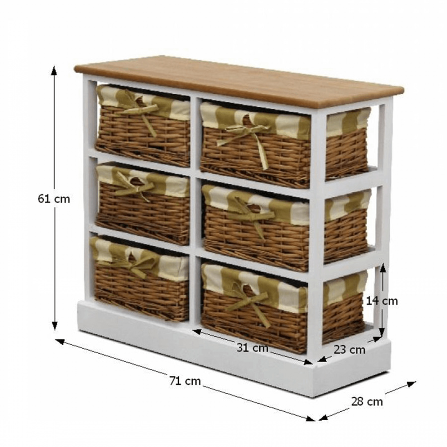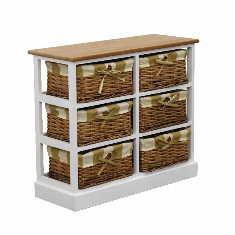 Komoda GINGER 1 se 6 proutěnými košíky v kombinaci bílé a medové barvy.