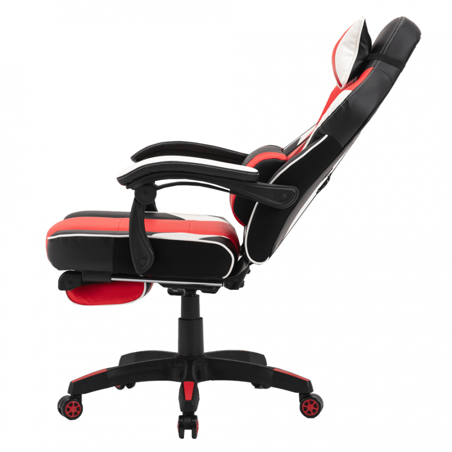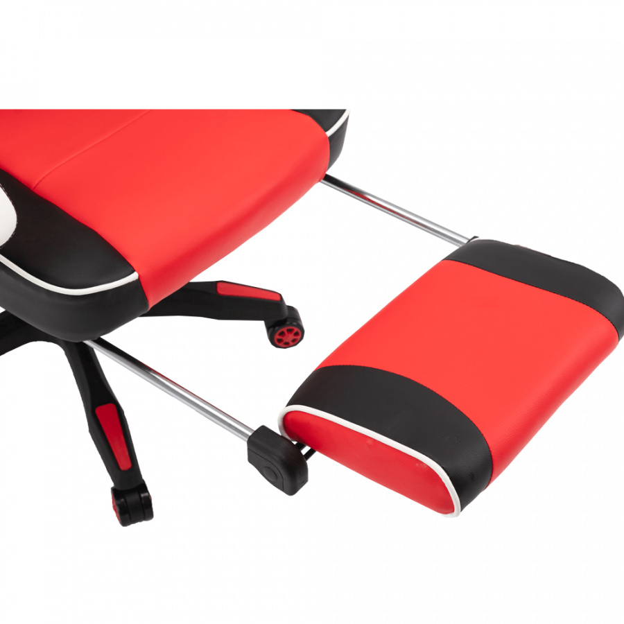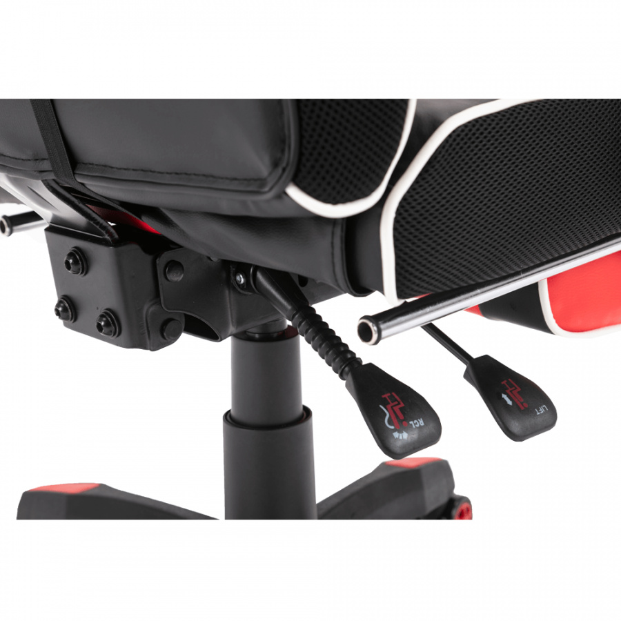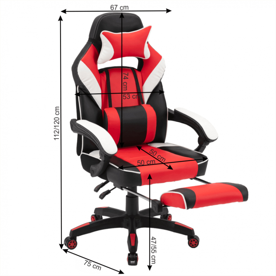 Materiál: ekokůže / plast / síťovina Barva: černá / bílá / červená Rozměry (ŠxHxV): 67x75x112-120 cm Nastavitelná výška sedu: 47-55 cm Hloubka sedu: 50 cm Šířka sedu: 50 cm Výška zádové opěrky: 74 cm Šířka zádové opěrky: 53 cm Maximální nosnost: 110 kg mechanismus houpání S polštářky v oblasti zad a hlavy S výsuvnou podnoží Čalouněné područky Polohovací zádová opěrka Dodávané v demontu