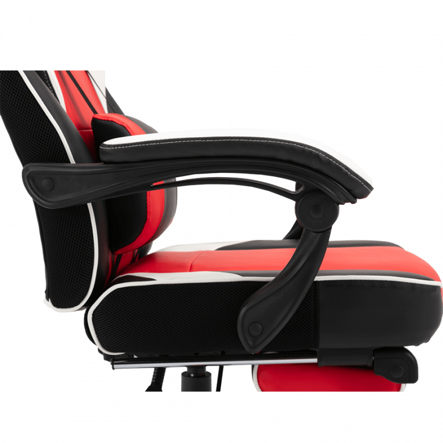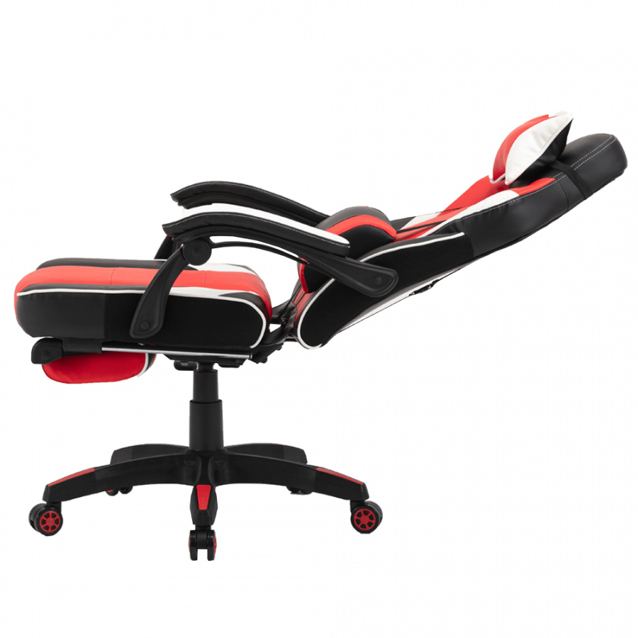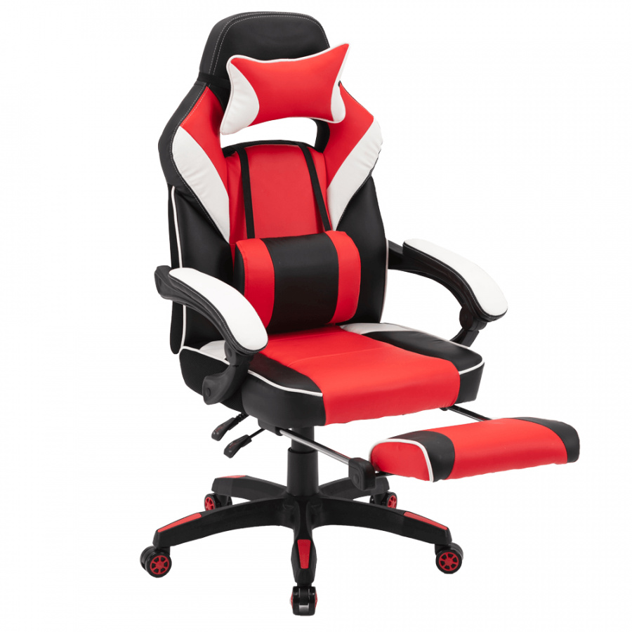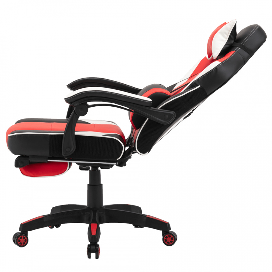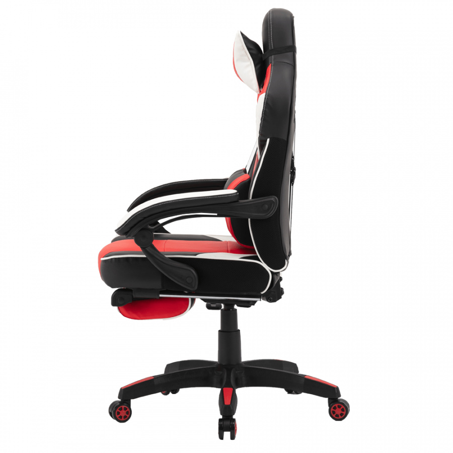 Materiál: ekokůže / plast / síťovina Barva: černá / bílá / červená Rozměry (ŠxHxV): 67x75x112-120 cm Nastavitelná výška sedu: 47-55 cm Hloubka sedu: 50 cm Šířka sedu: 50 cm Výška zádové opěrky: 74 cm Šířka zádové opěrky: 53 cm Maximální nosnost: 110 kg mechanismus houpání S polštářky v oblasti zad a hlavy S výsuvnou podnoží Čalouněné područky Polohovací zádová opěrka Dodávané v demontu