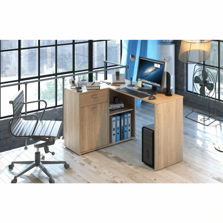 Rohový PC stůl, dub sonoma, KALIMERO