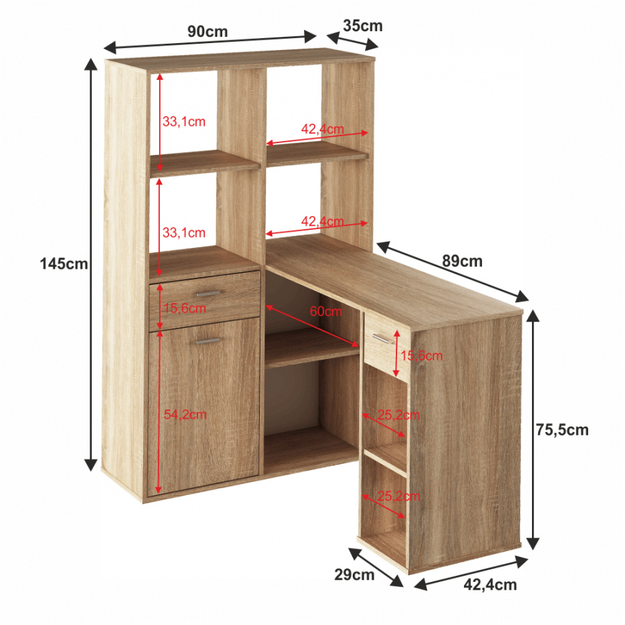 Materiál: DTD laminovaná Barva: dub sonoma Rozměry (ŠxHxV): 124x90x145 cm Tloušťka materiálu: 16 mm S regálem dva šuplíky skříňka Otevřený úložný prostor S úchytkami Kvalitní slovenský výrobek Dodávané v demontu