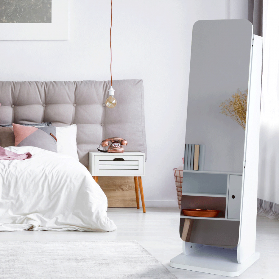 Zrcadlo DIADEM Materiál: MDF Barva: bílá Rozměry (ŠxHxV): 40x40x164 cm Stojanové Praktické S úložným prostorem Dodávané v demontu.