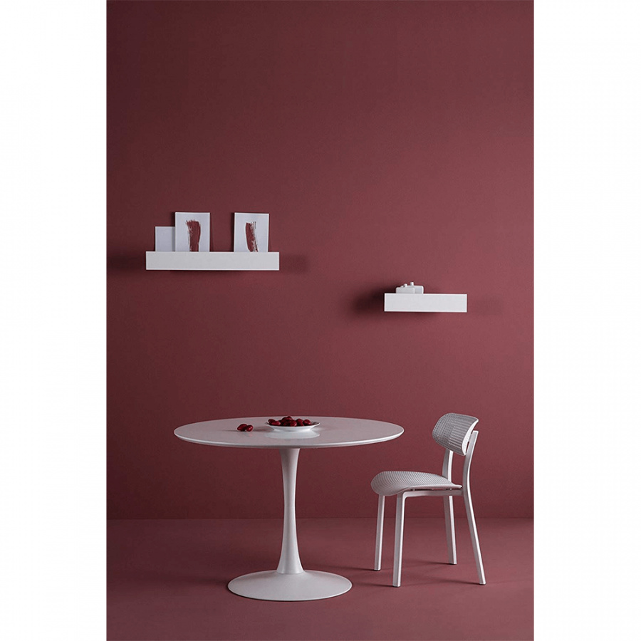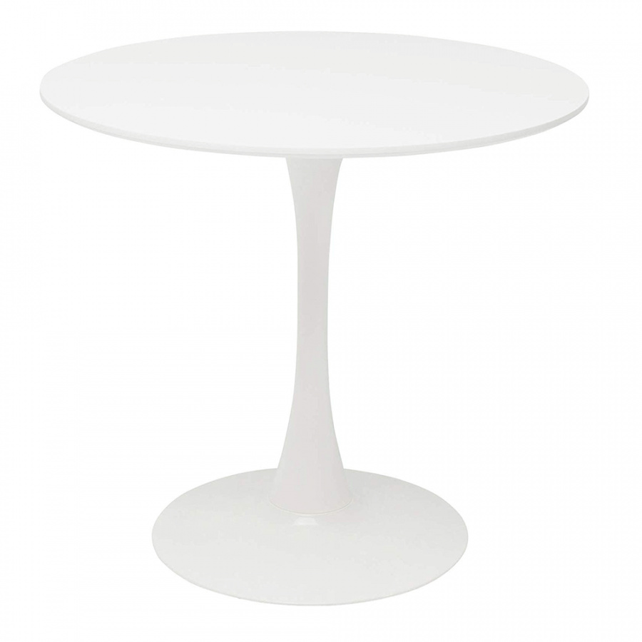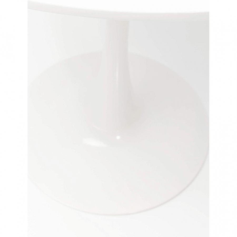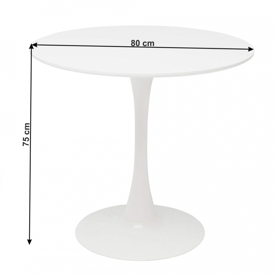 Jídelní stůl REVENTON Materiál: MDF / kov Barva: bílá matná Rozměry (průměr x V): 80x75 cm Tloušťka plátu stolu: 1,8 cm moderní design kulatý Dodávané v demontu.