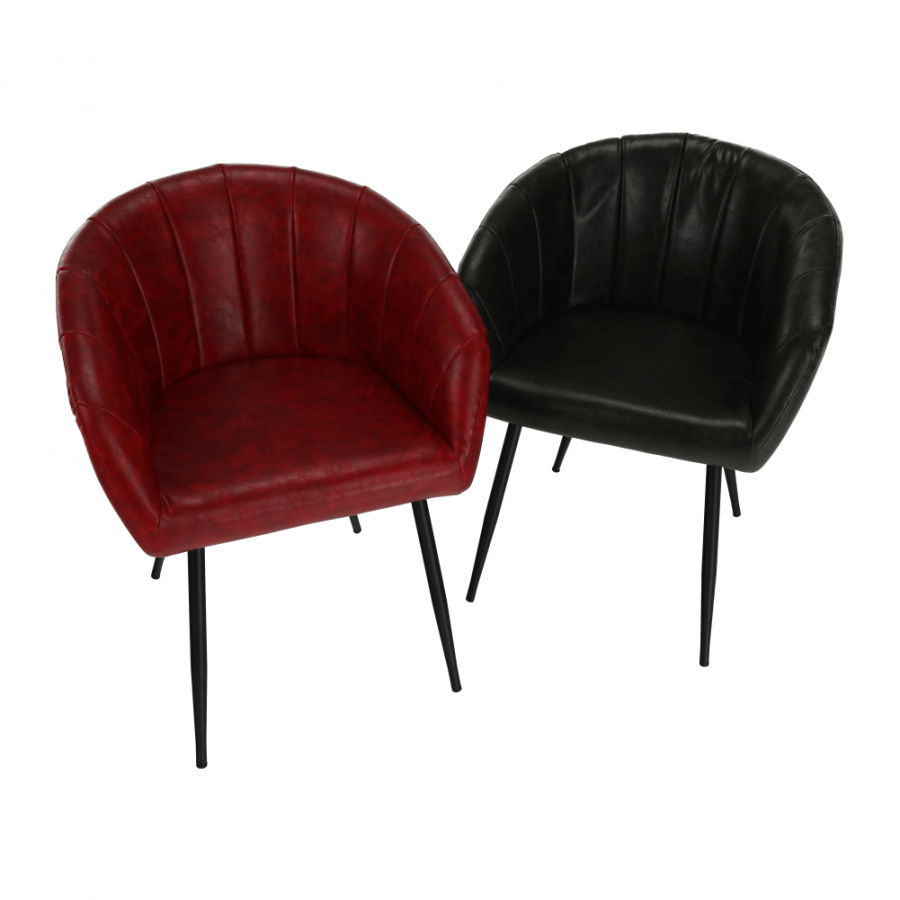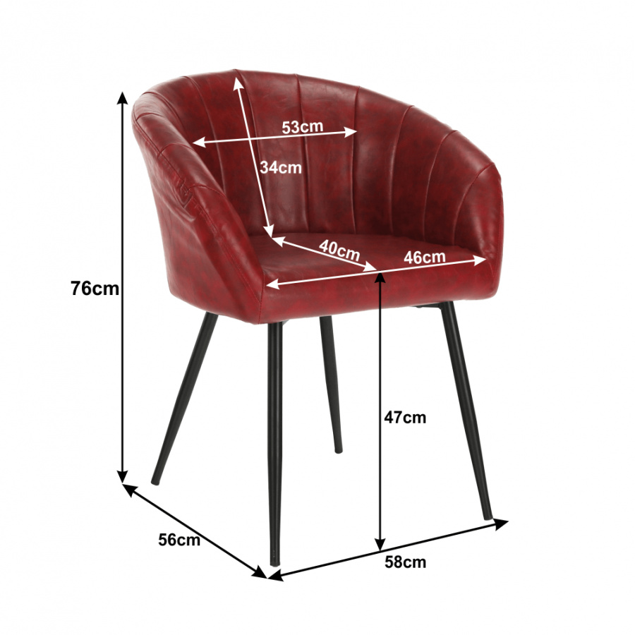 Materiál: ekokůže / kov Barevné provedení: červená / černá Rozměry (ŠxHxV): 58x56x76 cm Výška sedu: 47 cm Hloubka sedu: 40 cm Šířka sedu: 46 cm Výška zádové opěrky: 34 cm Šířka zádové opěrky: 53 cm Nosnost: 110 kg prošívané Dodáván v demontu.