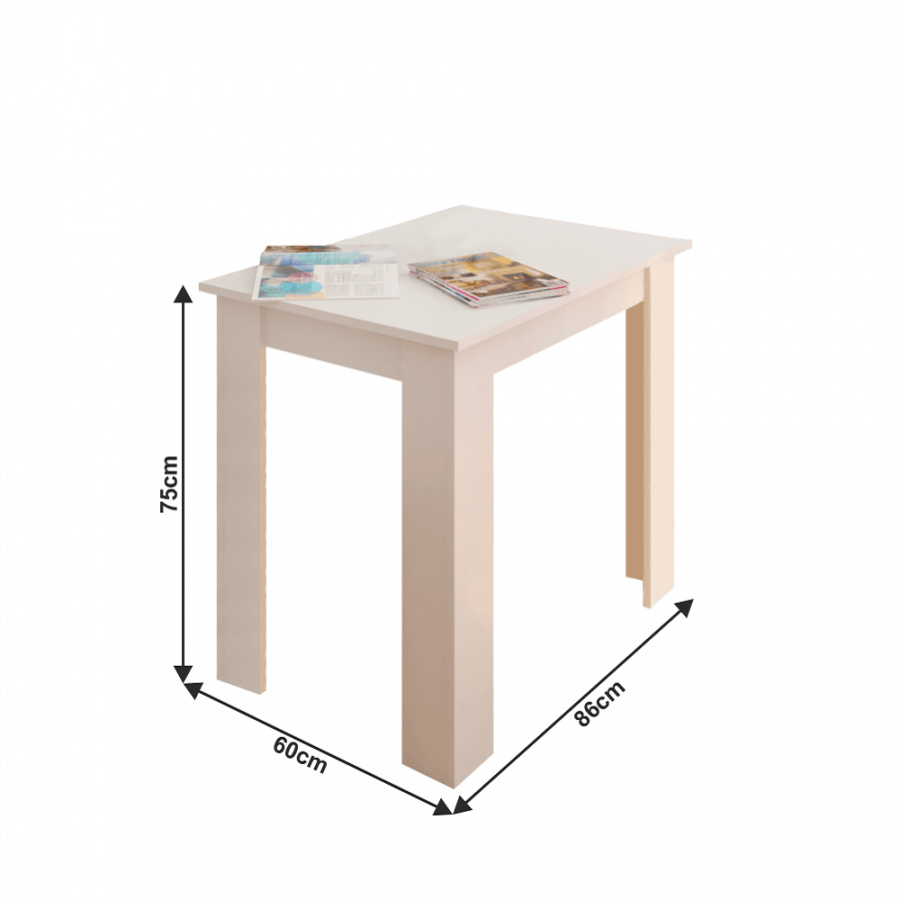 Jídelní stůl TARINIO Materiál: DTD laminovaná Provedení: bílá Rozměry (ŠxHxV): 86x60x75 cm Tloušťka materiálu: 16 mm Dodávané v demontu