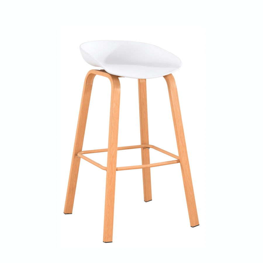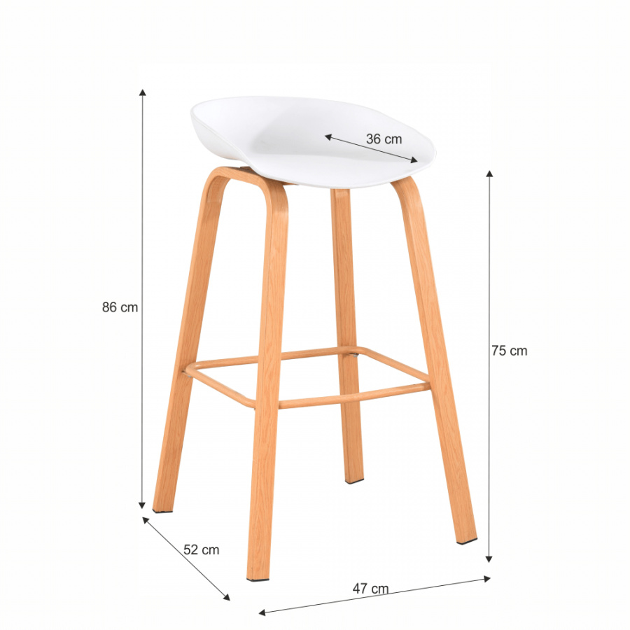 Barová židle BRAGA Materiál: plast / kov Barva: bílá / přírodní Rozměry (ŠxHxV): 47x52x86 cm Výška sedu: 75 cm Hloubka sedu: 36 cm moderní design Dodávané v demontu.