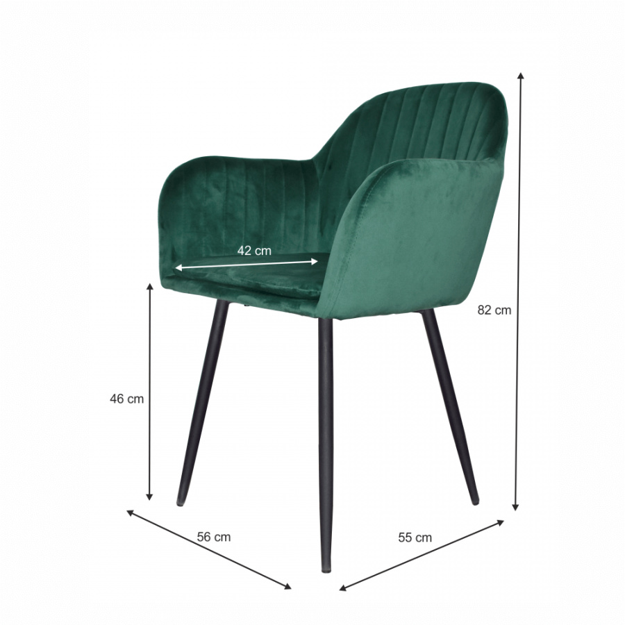 Materiál: látka Velvet / kov Barva: smaragdová / černá Rozměry (ŠxHxV): 56x55x82 cm Výška sedu: 46 cm Hloubka sedu: 42 cm Nosnost: 130 kg designové prošívané S měkkou sedací částí Dodávané v demontu.
