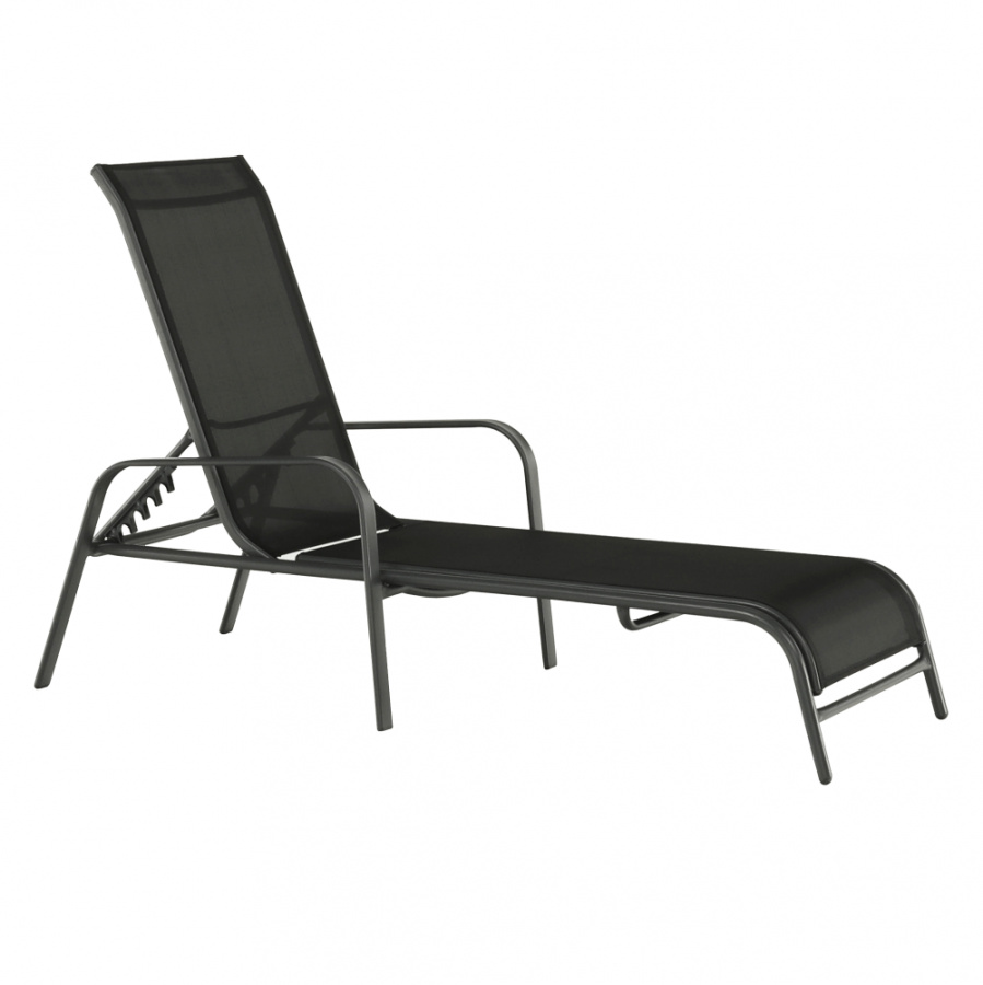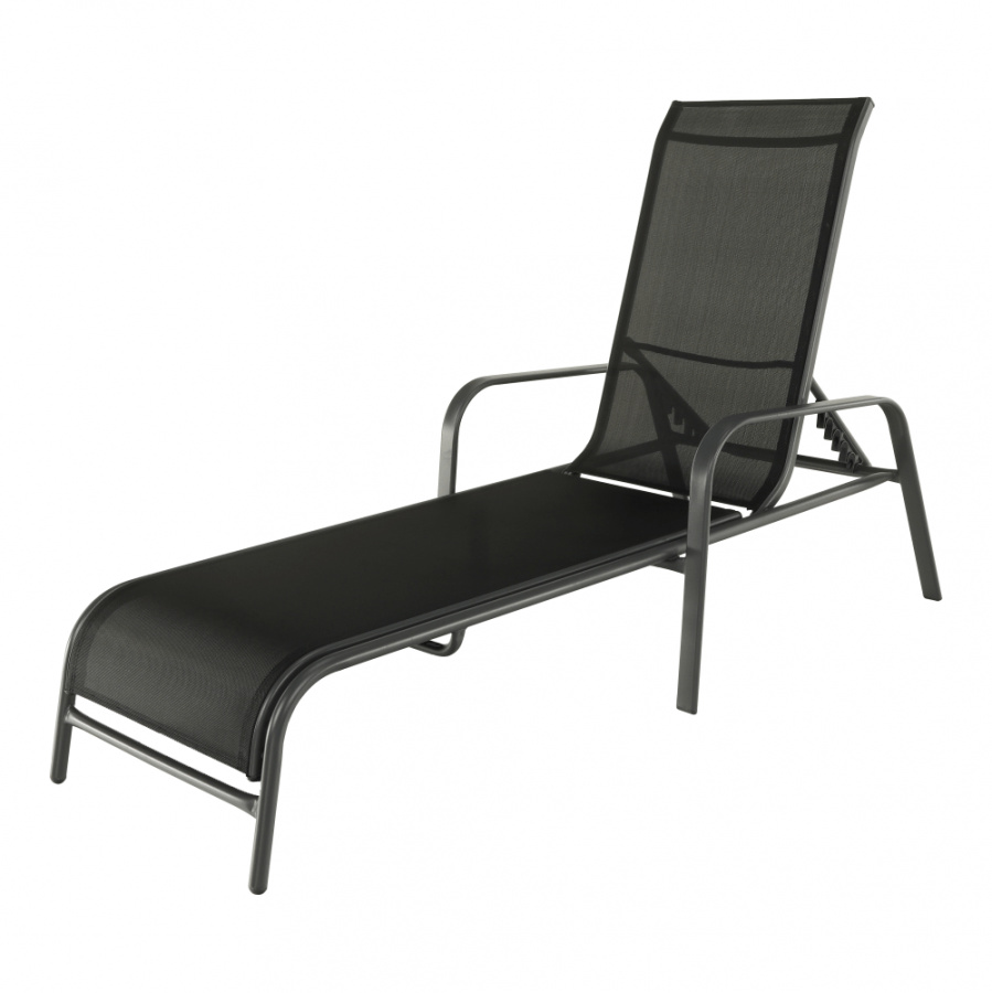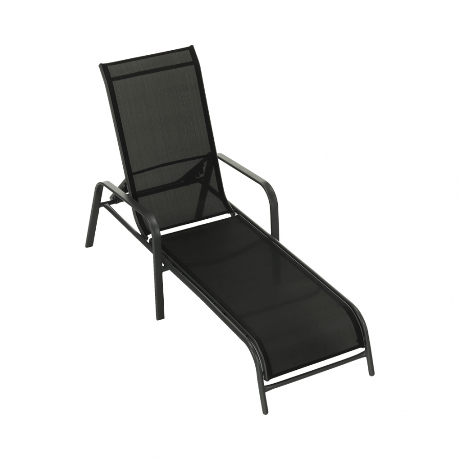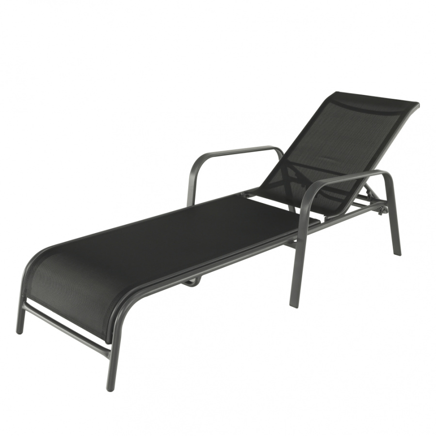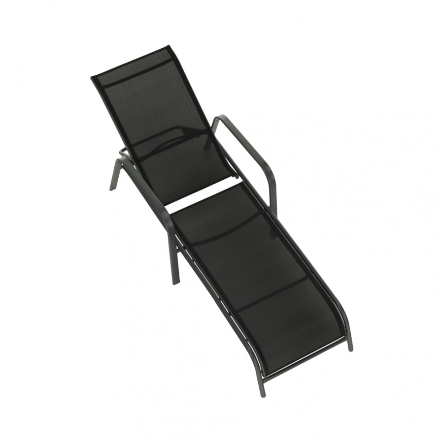 Polohovací zahradní lehátko, černá/šedá, ATREO
