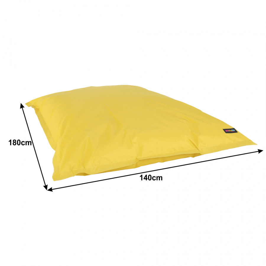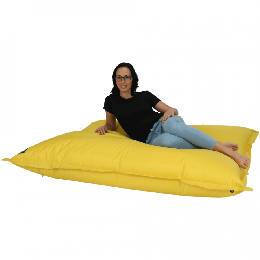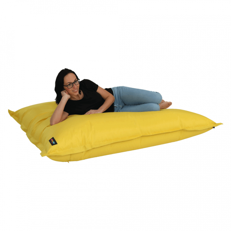 Sedací vak GETAF Materiál: látka / EPS (polystyrenové kuličky) Provedení: žlutá Rozměry (ŠxV): 140x180 cm Nosnost: 100 kg Objem výplně 450 l Dodávané v demontu
