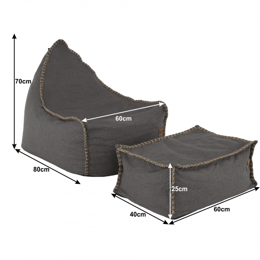 Sedací vak POSALO Materiál: látka / EPS (polystyrenové kuličky) Provedení: šedohnědá TAUPE Rozměry vak (ŠxHxV): 60x80x70 cm Rozměry taburet (ŠxHxV): 60x40x25 cm Nosnost: 100 kg Objem výplně 230 l Dodávané v demonte.