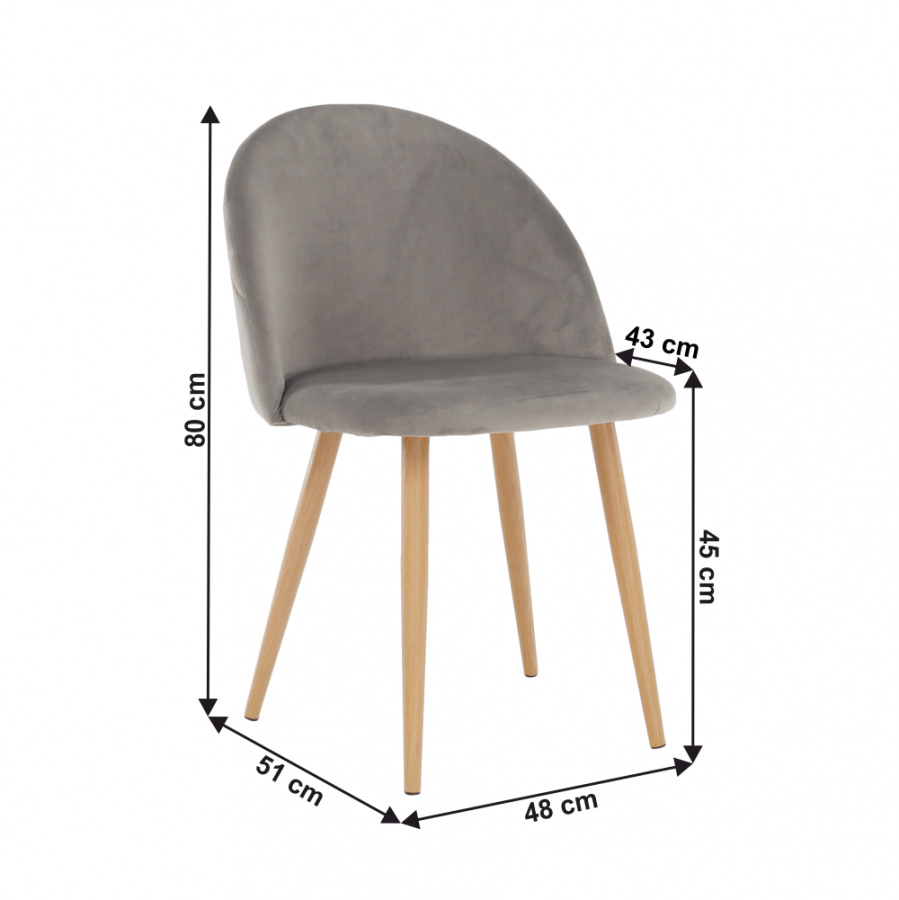 Jídelní židle FLUFFY Materiál: látka Velvet / kov Barva: světlešedá / přírodní Rozměry (ŠxHxV): 48x51x80 cm Výška sedu: 45 cm Hloubka sedu: 43 cm Dizjanová Dodávané v demontu.