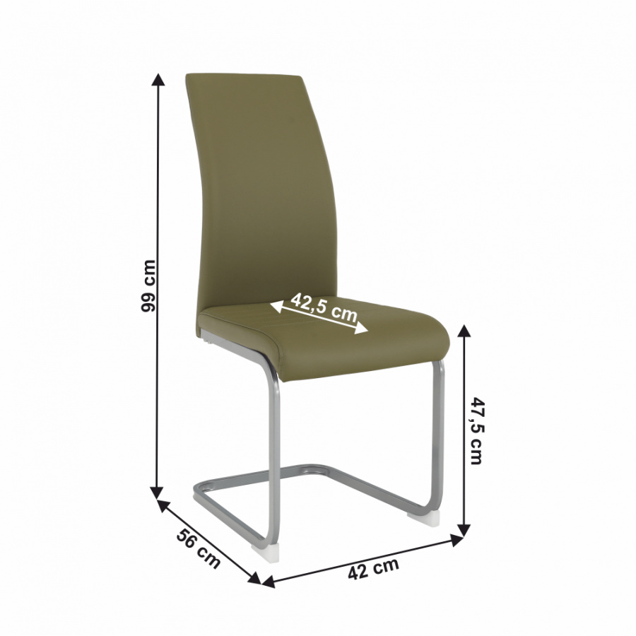 Materiál čalounění: ekokůže Barva čalounění: olivově zelená Materiál nohy: kov Barva nohy: šedá Rozměry (ŠxHxV): 42x56x99 cm Výška sedu: 47,5 cm Hloubka sedu: 42,5 cm Nosnost: 90 kg Dodávané v demontu
