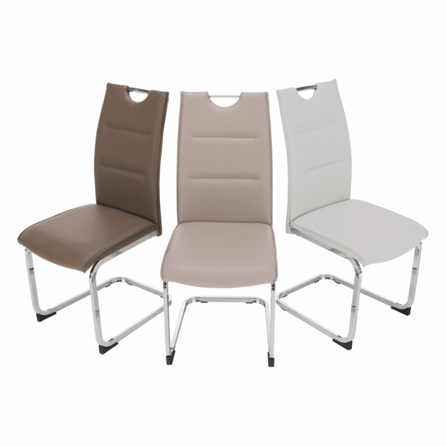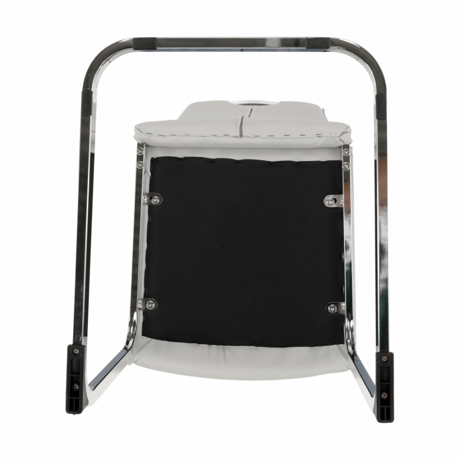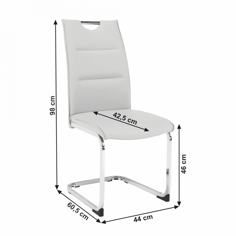 Materiál: ekokůže / chrom Barva: světlešedá / chrom Rozměry (ŠxHxV): 44x60,5x98 cm Výška sedu: 46 cm Hloubka sedu: 42,5 cm Nosnost: 90 kg Dodávané v demontu.
