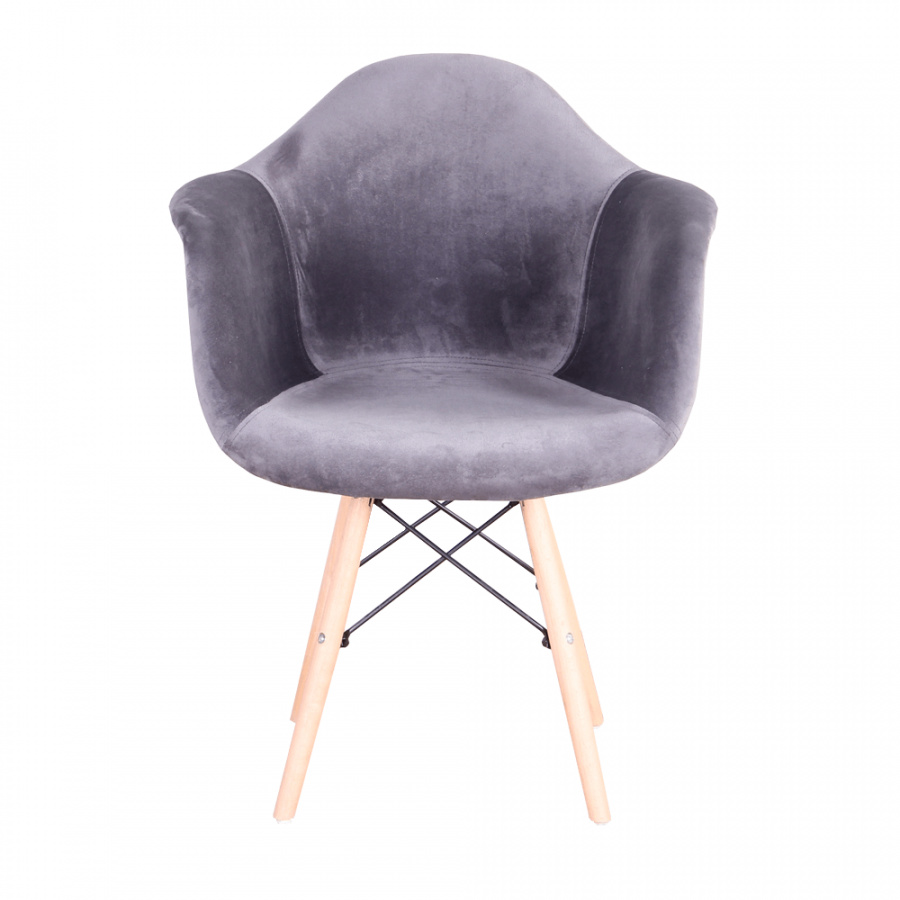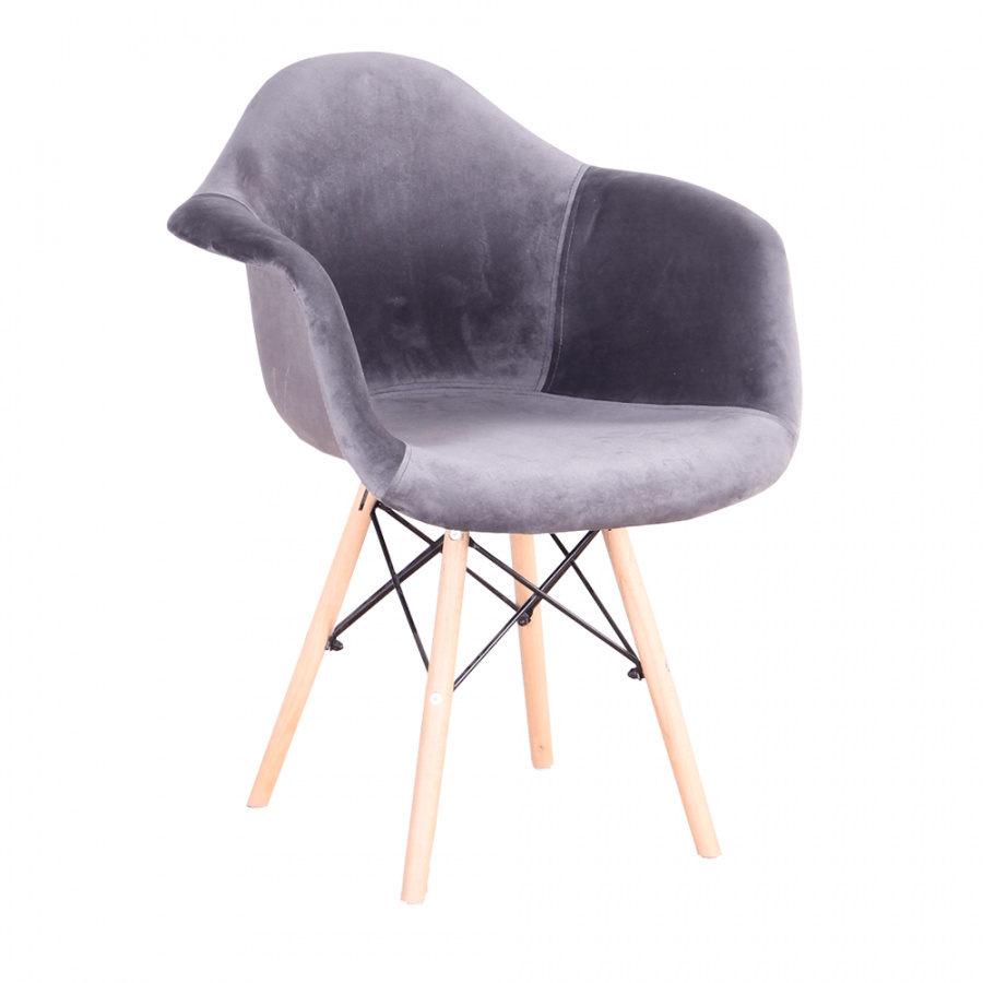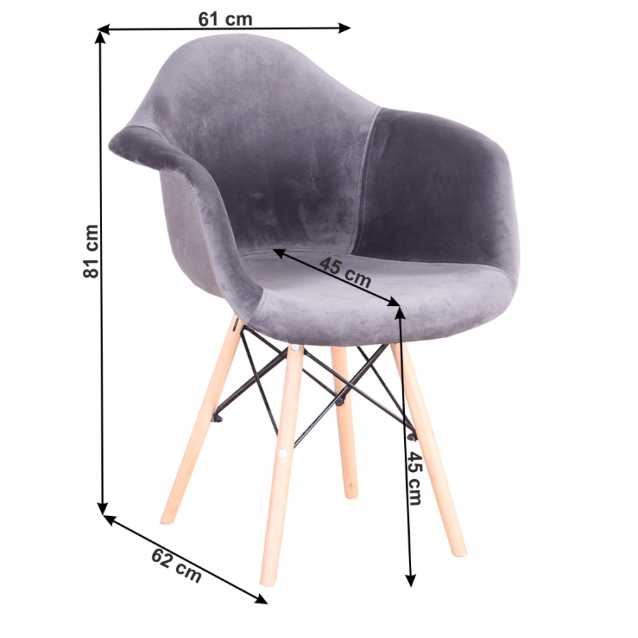 Křeslo DAREL TYP 3 Materiál: látka Velvet / dřevo Barva: šedohnědá taupe / buk Rozměry (ŠxHxV): 61x62x81 cm Výška sedu: 45 cm Hloubka sedu: 45 cm moderní zpracování Dodávané v demontu.