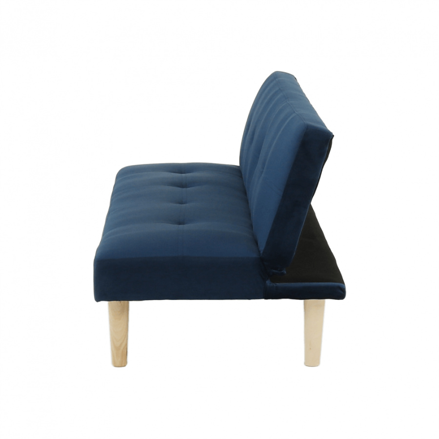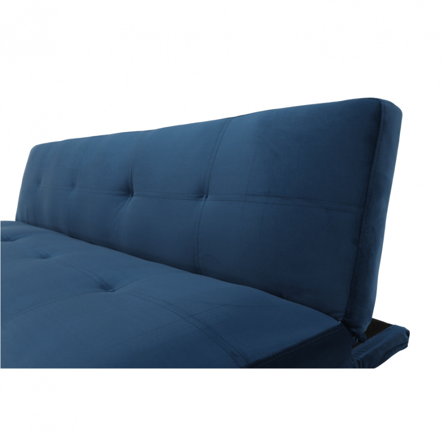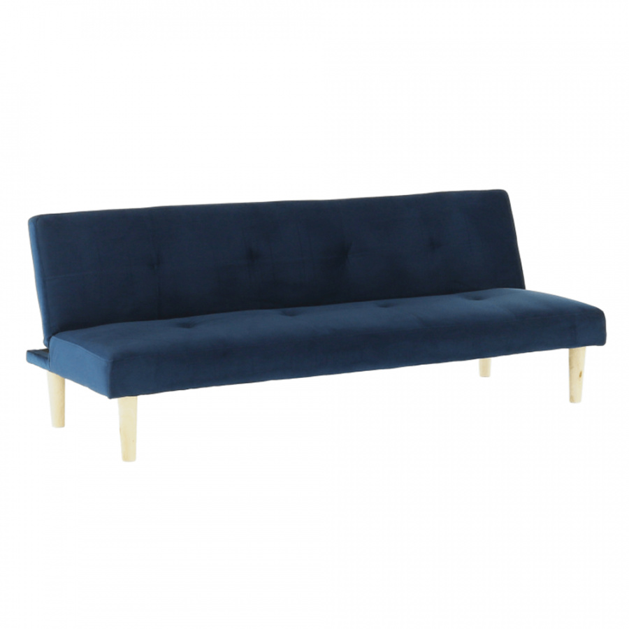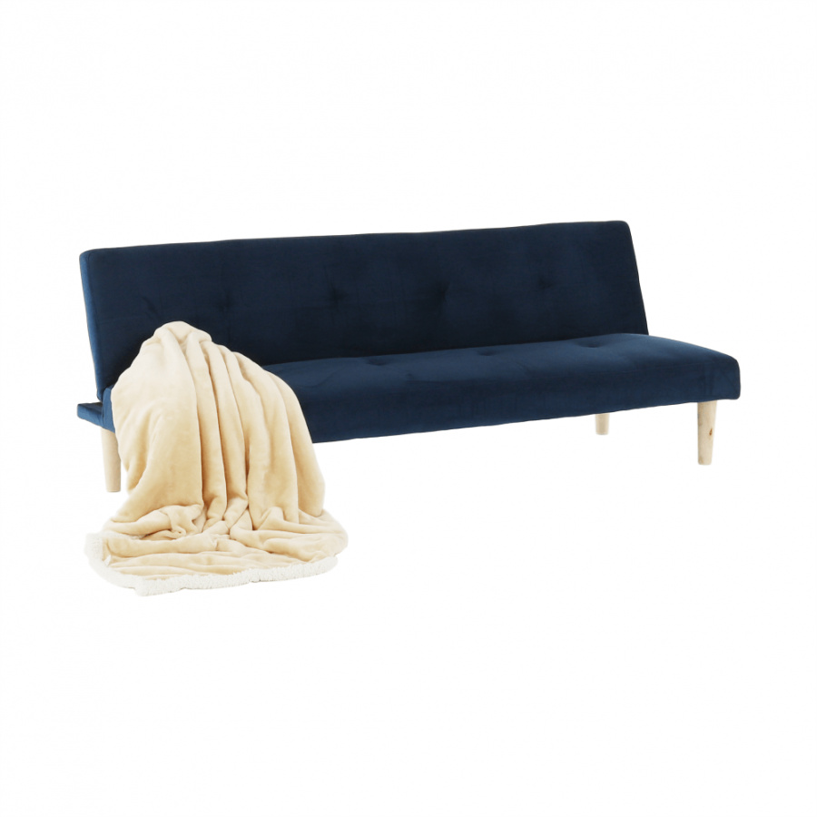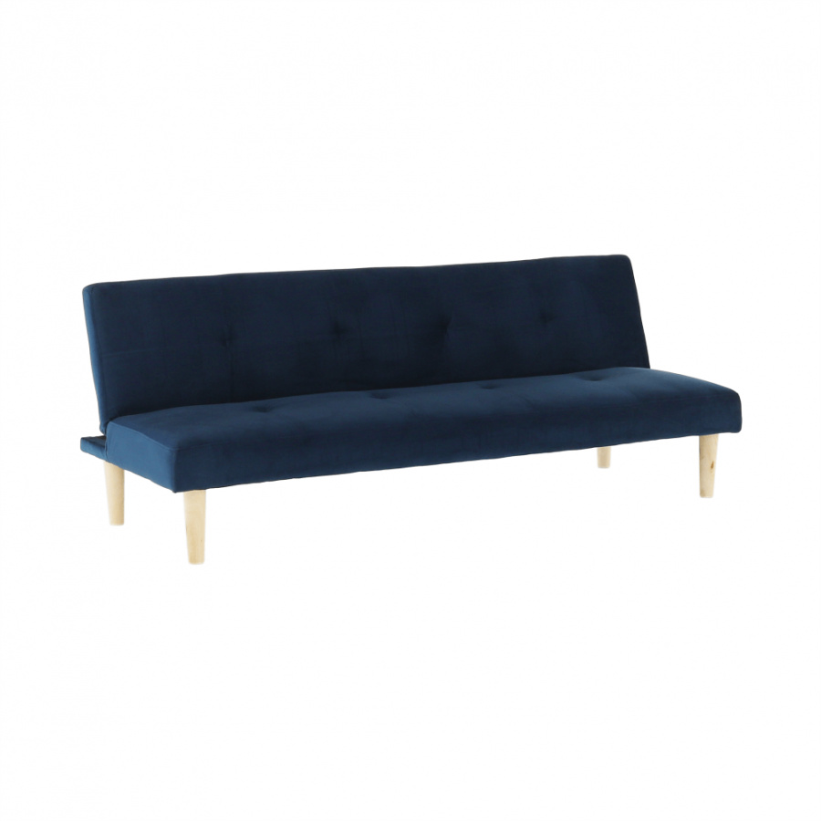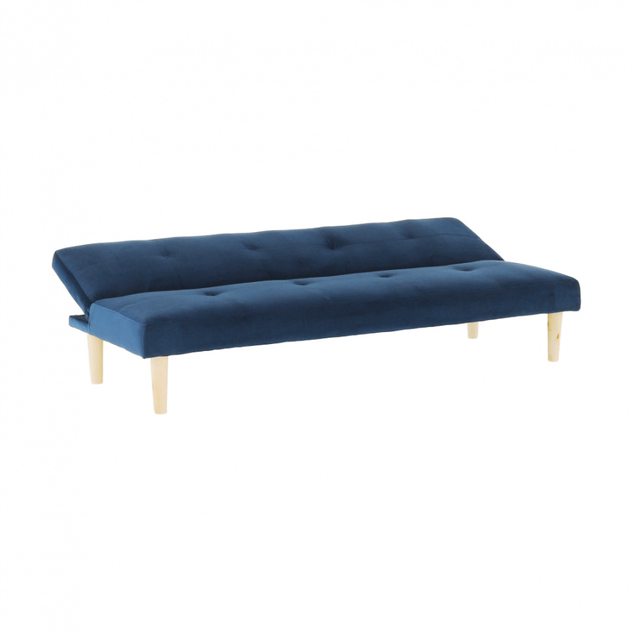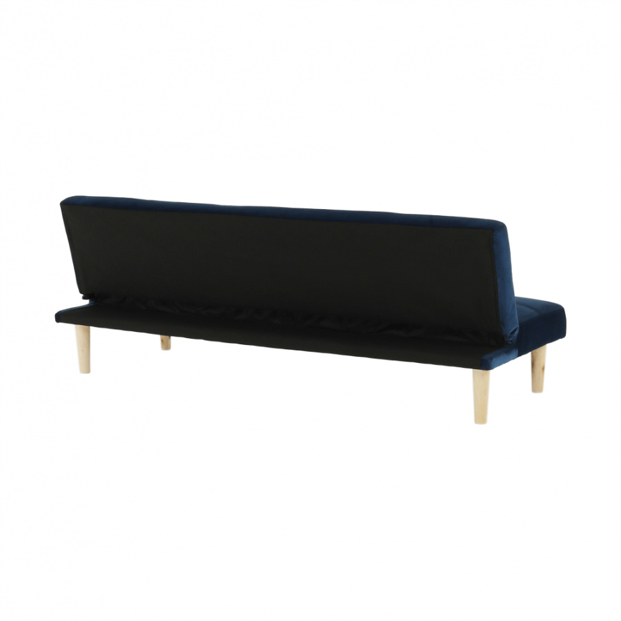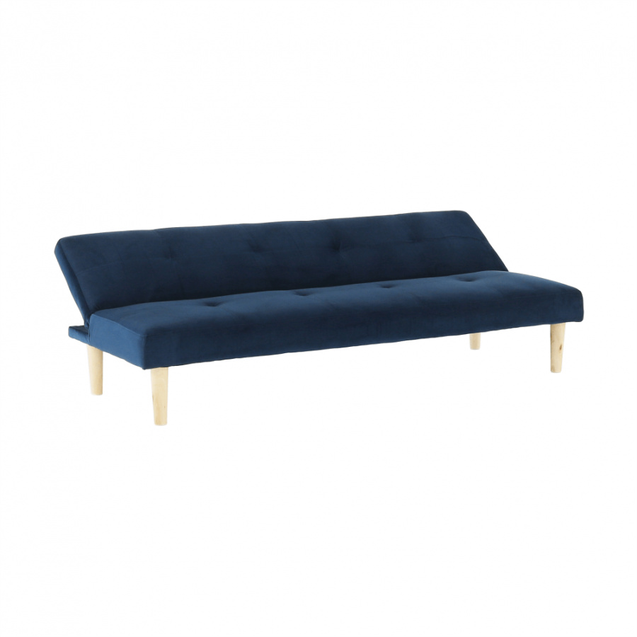 Materiál čalounění: Velvet látka Barva čalounění: tmavomodrá Materiál nohy: dřevo Barva nohy: dub Rozměry (ŠxHxV): 178x68x66 cm rozkládací Plocha na spaní (ŠxHxV): 178x84x34 cm Výška sedu: 34 cm Hloubka sedu: 44 cm moderní design Molitanová výplň sedáku Dřevěné nožičky Dodávané v demontu