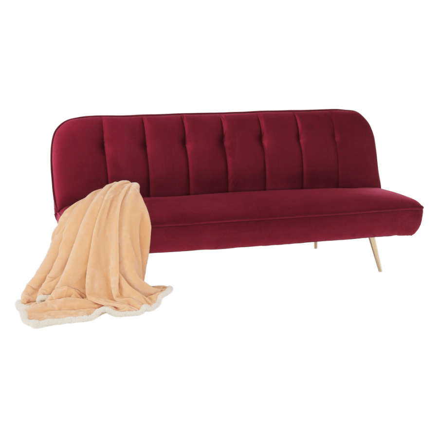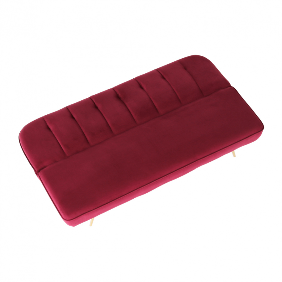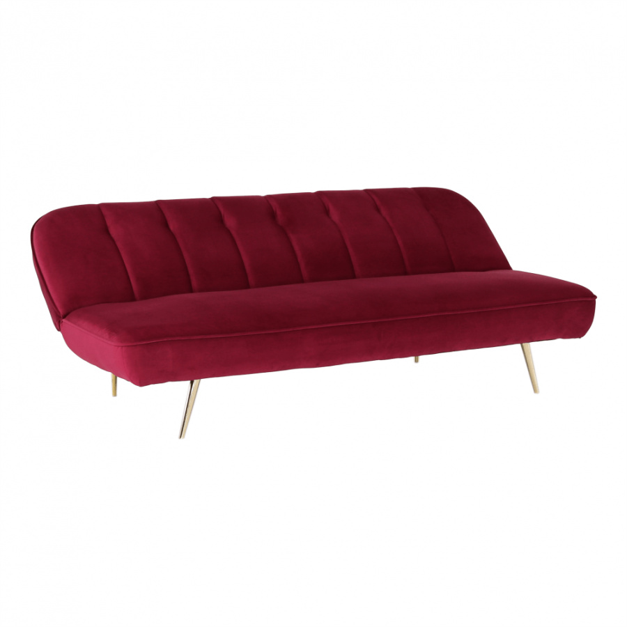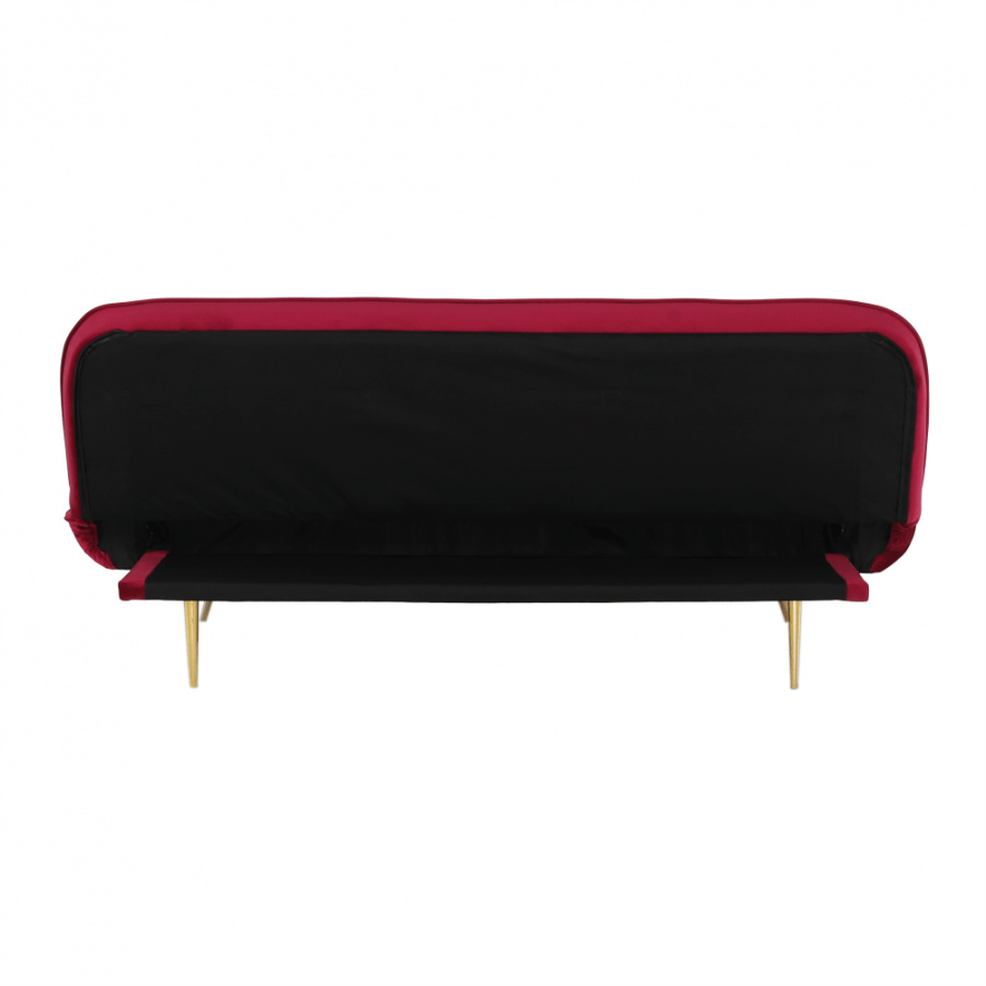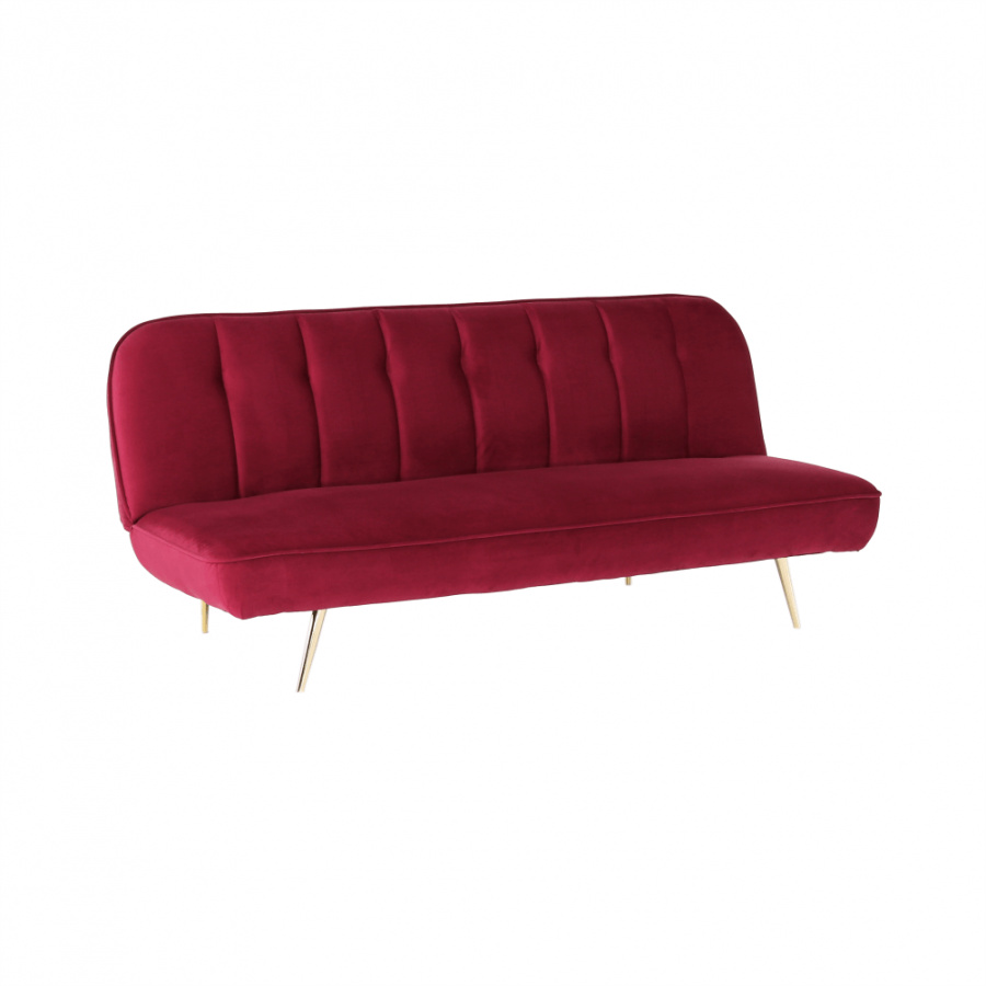 Materiál čalounění: Velvet látka Barva: malinová Materiál nohy: chrom Barva: gold zlatý Rozměry (ŠxHxV): 180x85x76 cm Plocha na spaní (ŠxHxV): 180x100x36 cm Výška spodního prostoru od podlahy: 18 cm Výška sedu: 36 cm Hloubka sedu: 49 cm rozkládací Dodávané v demontu