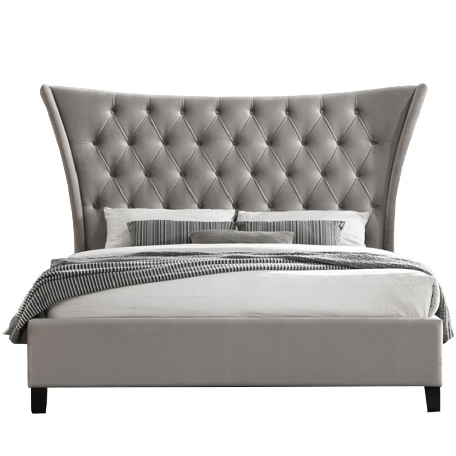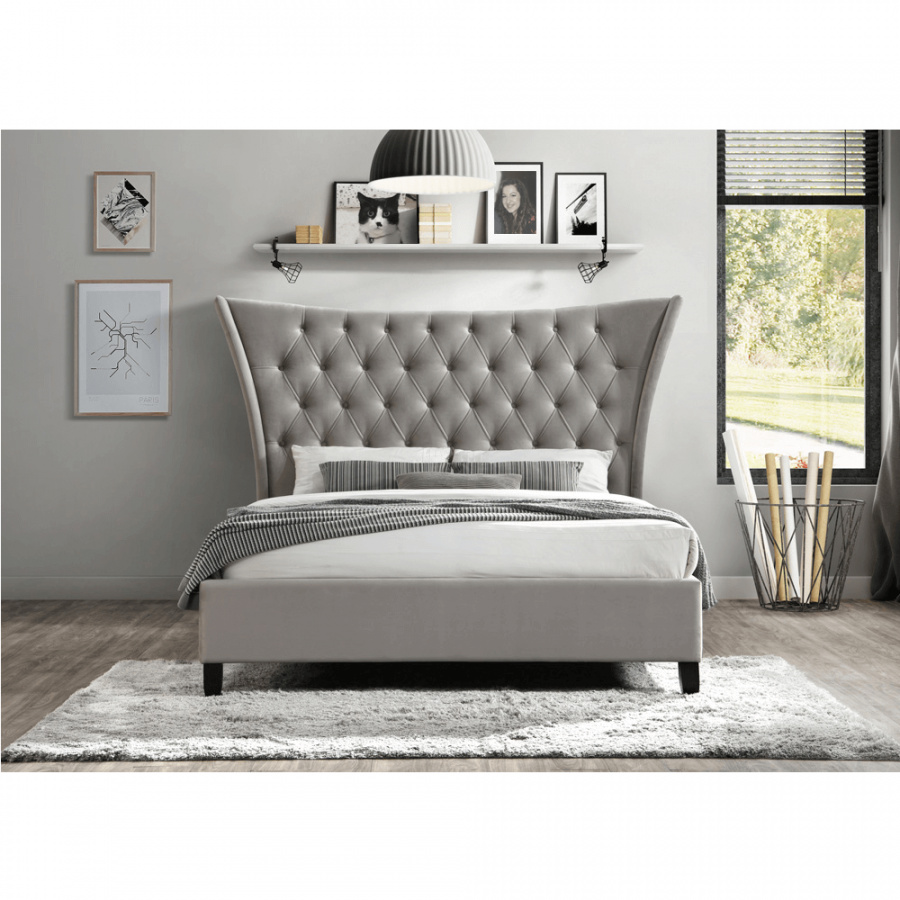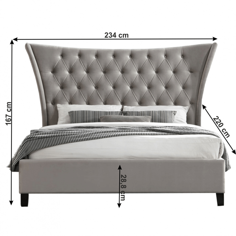 Postel s vysokým prošívaným čelem a lamelovým roštem ALESIA Materiál: látka / dřevo Barva: světlehnědá / černá Rozměry (ŠxHxV): 234x220x167 cm Plocha na spaní (ŠxD): 180x200 cm Výška po rošt: 28,8 cm Dodávané v demontu.