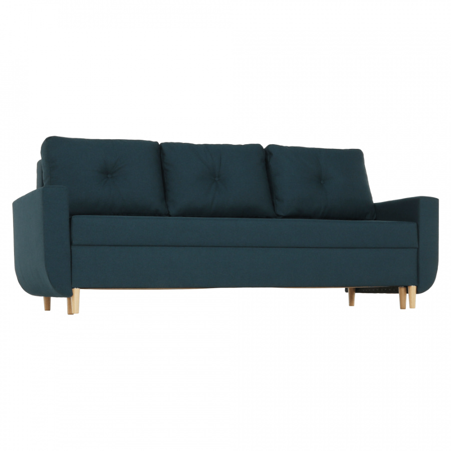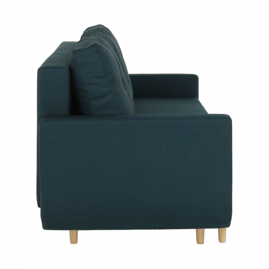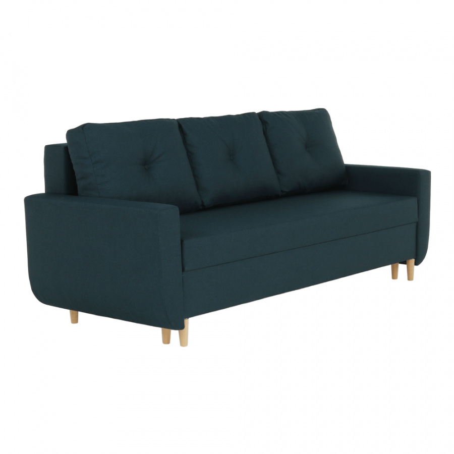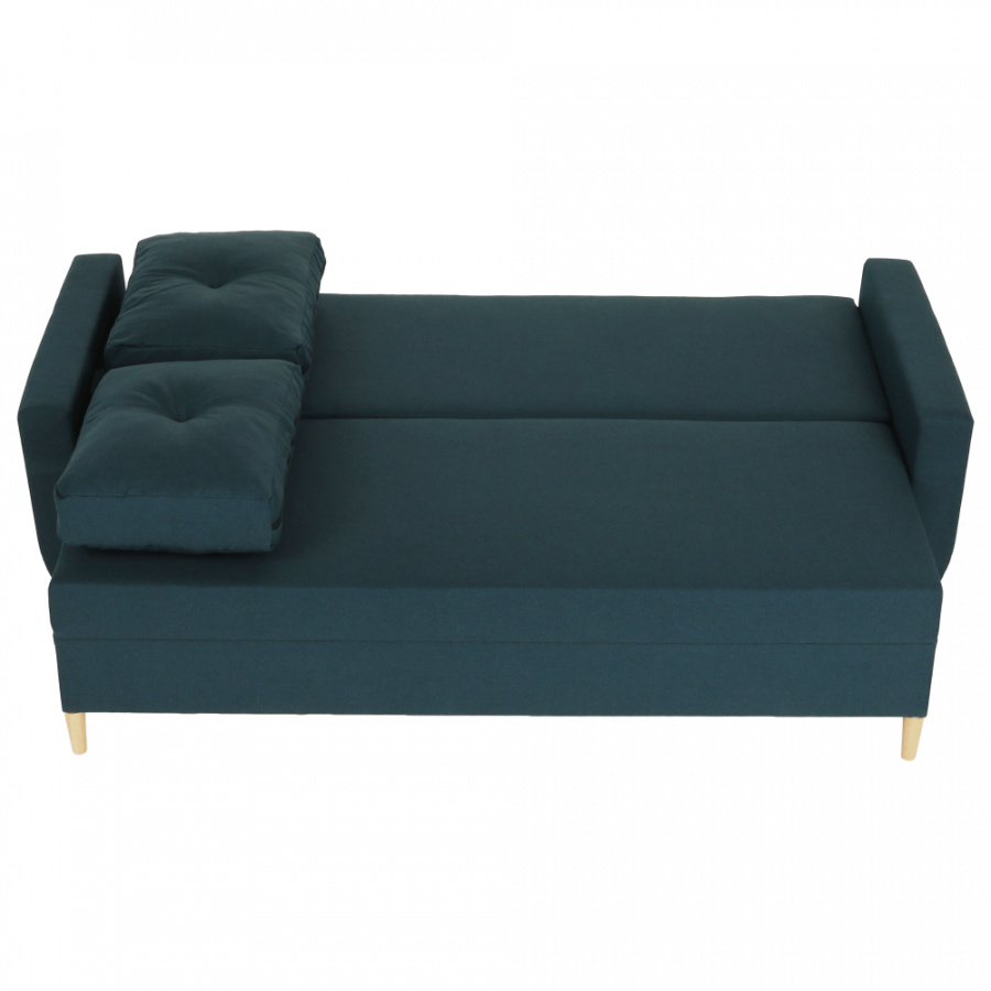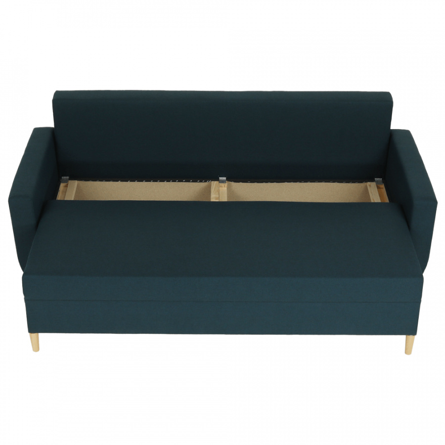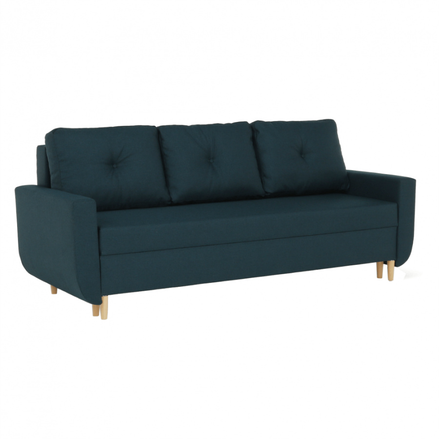 Materiál: látka Malmo Barva: modrá 81 Rozměry (ŠxHxV): 225x85x84 cm rozkládací Plocha na spaní (ŠxD): 140x190 cm Výška sedu: 44 cm Hloubka sedu s polštáři: 50 cm Hloubka sedu bez polštářů: 70 cm Výška spodního prostoru od podlahy: 12 cm celočalouněná Bonelové výplň sedáku skandinávský styl úložný prostor Tři opěradlové polštáře Určená i na každodenní spaní Dodávané v demontu