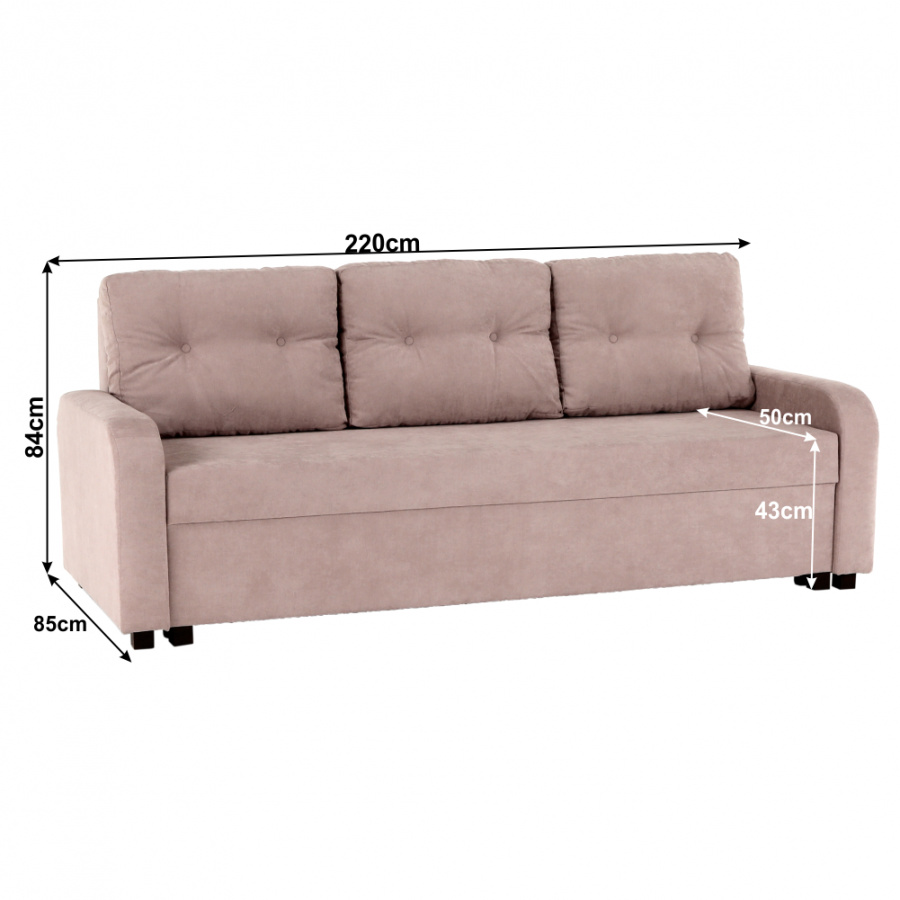 Materiál: látka Soro Barva: 61 starorůžová Rozměry (ŠxHxV): 220x85x84 cm Plocha na spaní (ŠxD): 140x190 cm Výška spodního prostoru od podlahy: 5 cm Výška sedu: 43 cm Hloubka sedu: 50/70 cm celočalouněná rozkládací S úložným prostorem Vhodná na každodenní spaní Bonelové sezení Dodávané v demontu.