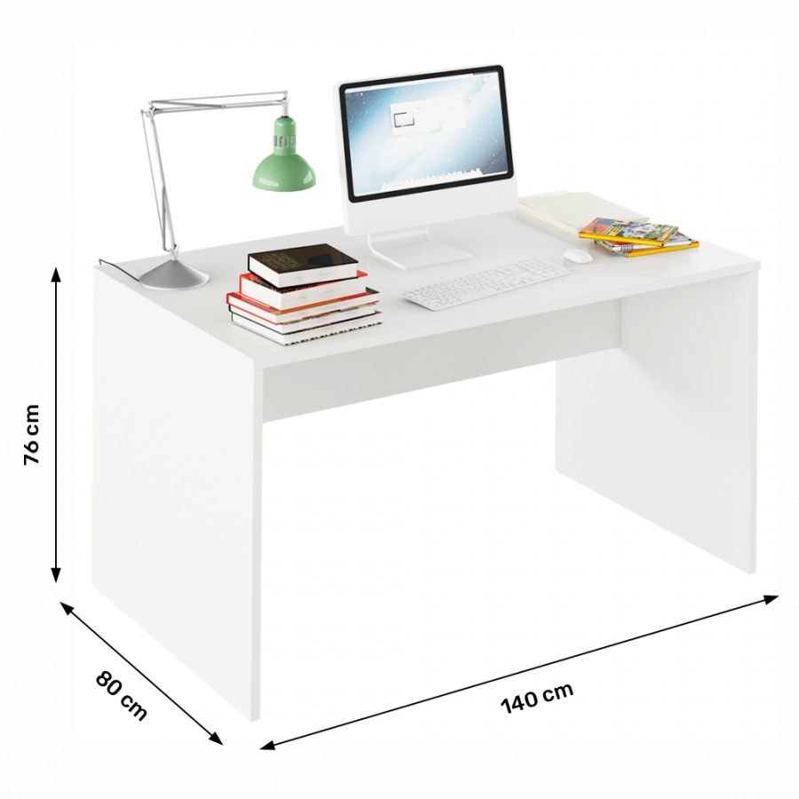 Psací stůl Rioma TYP 11 Barevné provedení: bílá Materiál: DTD laminovaná Rozměry (ŠxHxV): 140x80x76 cm Tloušťka materiálu: 16/22 mm Dodávané bez kontejneru, kontejner je možné si dokoupit Dodávané v demontu.