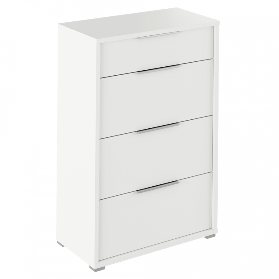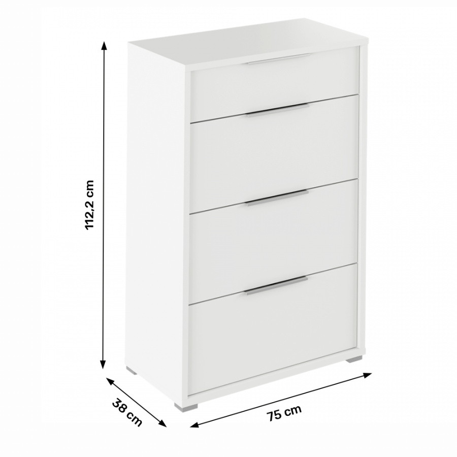 Komoda 4 šuplíková RIOMA TYP 22 Barevné provedení: bílá Materiál: DTD laminovaná Rozměry (ŠxHxV): 75x38x112,2 cm Tloušťka materiálu: 16/22 mm s šuplíky Dodávané v demontu.