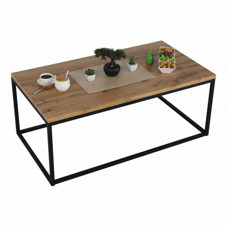 Barva: světlý dub/černá Materiál: MDF/kov Rozměry (ŠxHxV): 110x60x45 cm Dodávané v demontu.