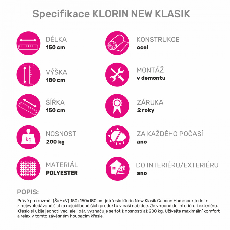 Závěsné křeslo KLORIN NEW KLASIK CACOON HAMMOCK