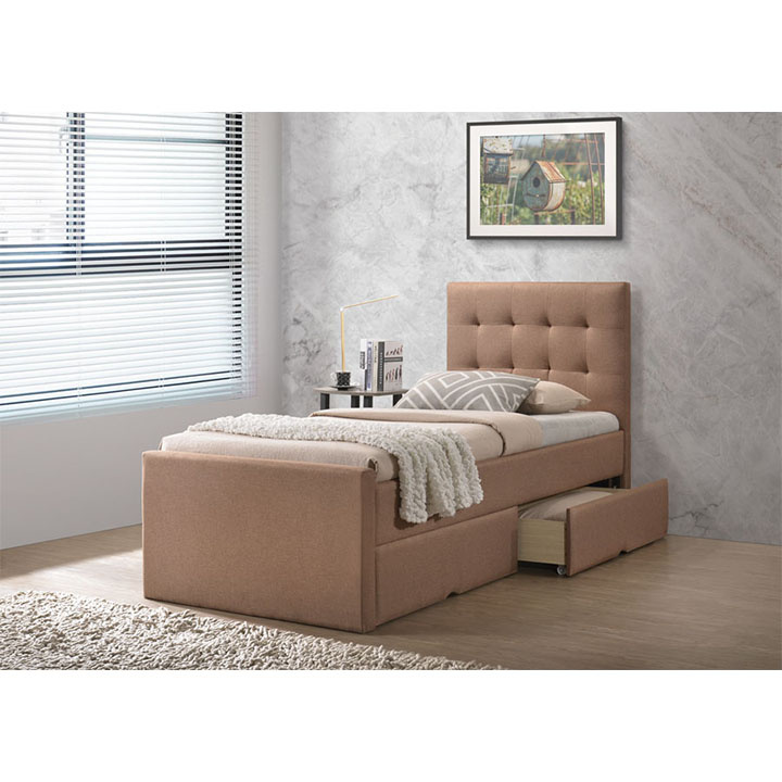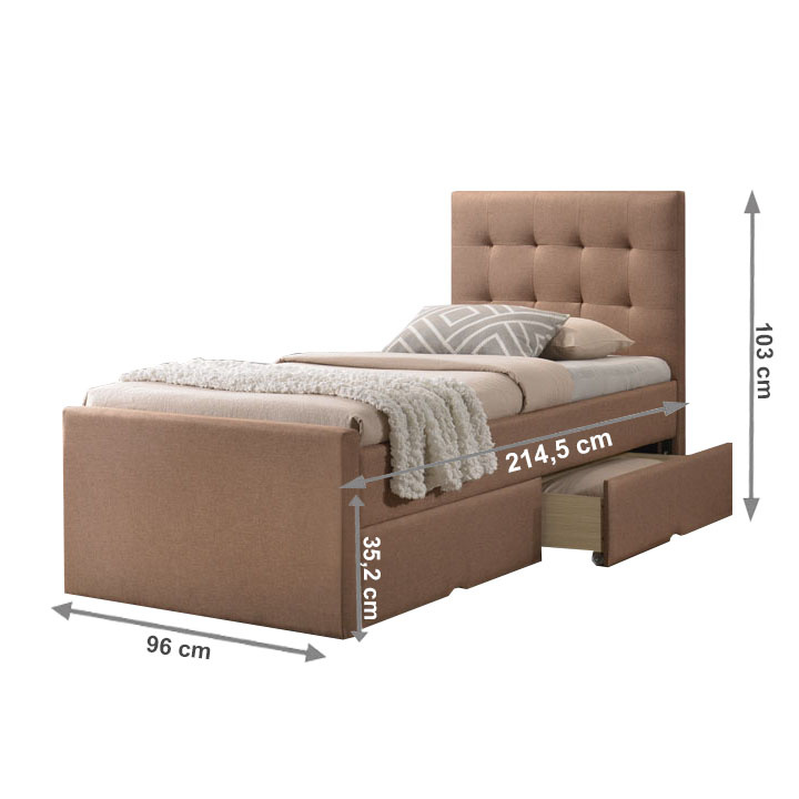 Moderní postel s vysokým prošívaným čelem a praktickým úložným prostorem - 2 šuplíky