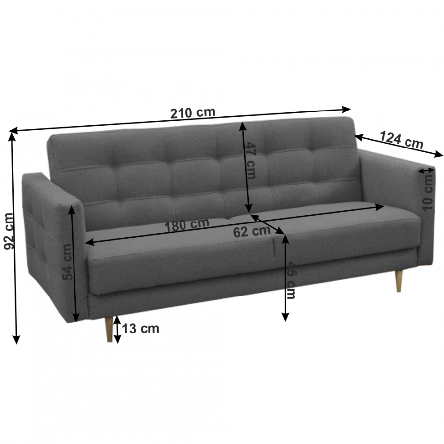 Celočalouněný rozkládací 3-sed s úložným prostorem.