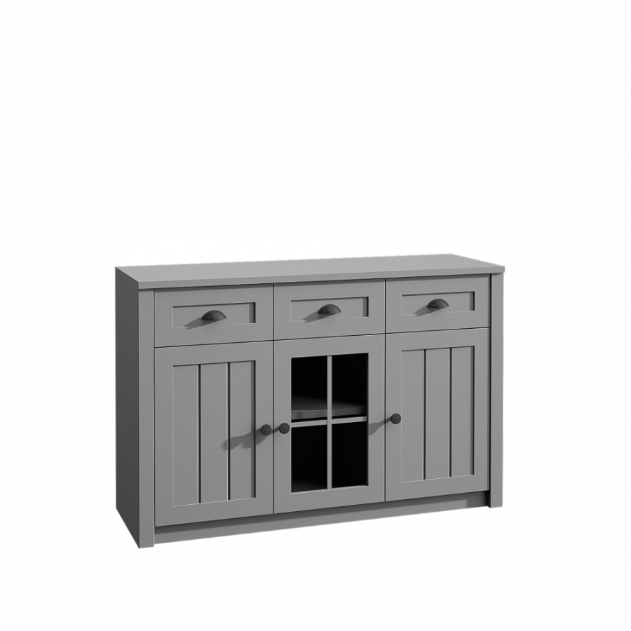 Materiál: DTD laminovaná / sklo Barva: šedá Rozměry (ŠxHxV): 130x43x88 cm Tloušťka materiálu korpus: 15 mm Tloušťka materiálu vrchní desky: 22 mm s šuplíky třídveřová Dodávané v demontu.