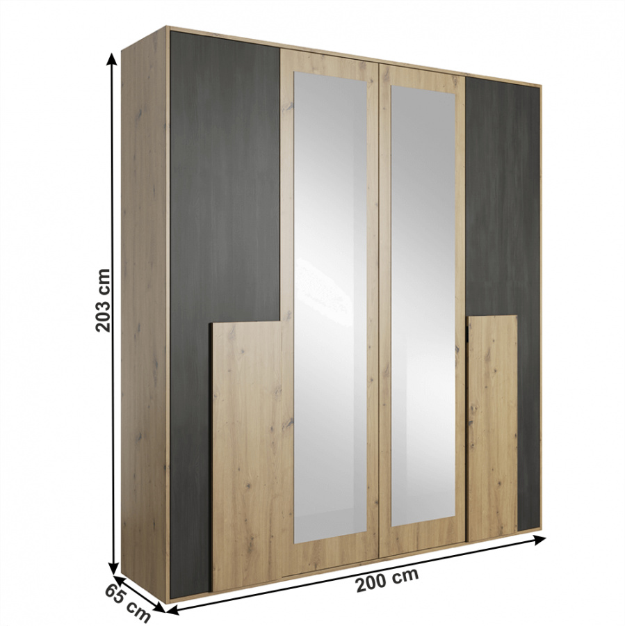 Ložnicová sestava (skříň, postel 160x200, 2x noční stolek) BAFRA Materiál: DTD laminovaná / ABS hrany Provedení: dub artisan / čierns borovice norská Rozměry skříň (ŠxHxV): 200x65x203 cm dvoudveřová úložný prostor věšáková část policová část Rozměry postel (ŠxHxV): 190x205x100 cm Plocha na spaní (ŠxD): 160x200 cm Dodávána bez roštu a matrace Rozměry noční stolek (ŠxHxV): 54x40x40 cm Tloušťka materiálu: 16 mm 2 šuplíky Součástí sestavy jsou dva noční stolky Dodávané v demontu.