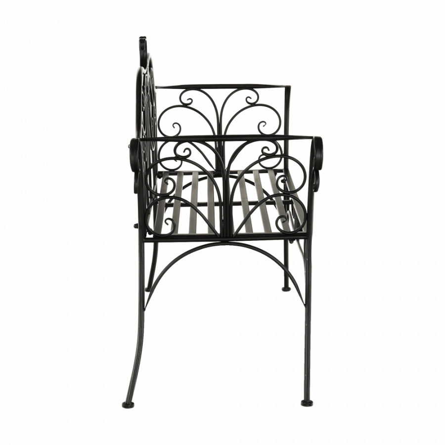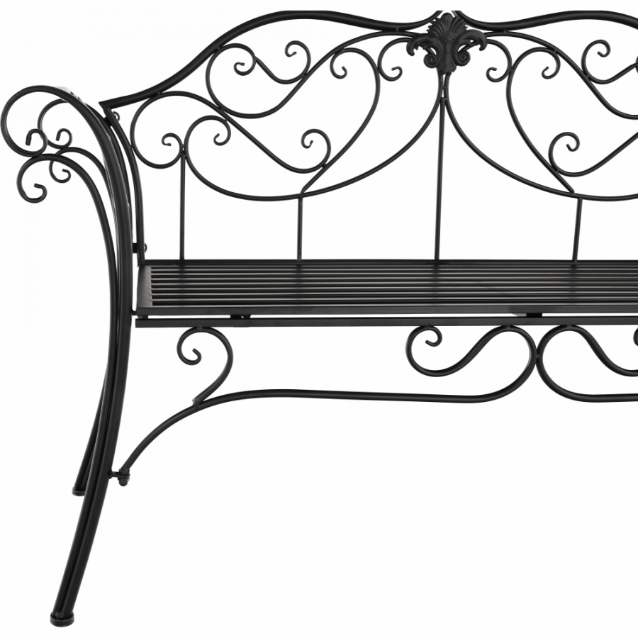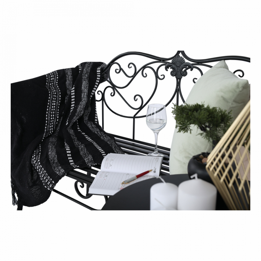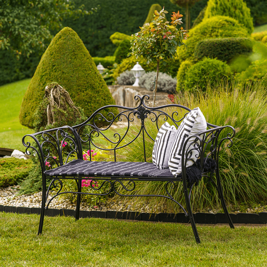 Materiál: kov Barva: černá Rozměry (ŠxHxV): 131x49x89 cm Výška sedu: 43 cm Hloubka sedu: 42 cm Šířka sedu: 98,5 cm Nosnost: 150 kg Dodávané bez polštářů romantický vzhled S ozdobnými prvky Dodávané v demontu