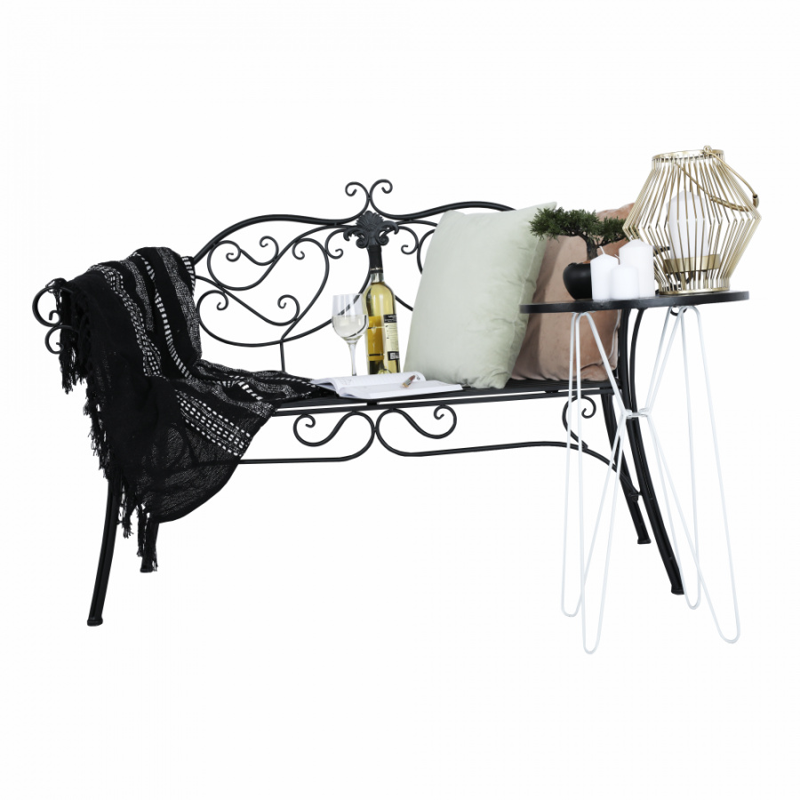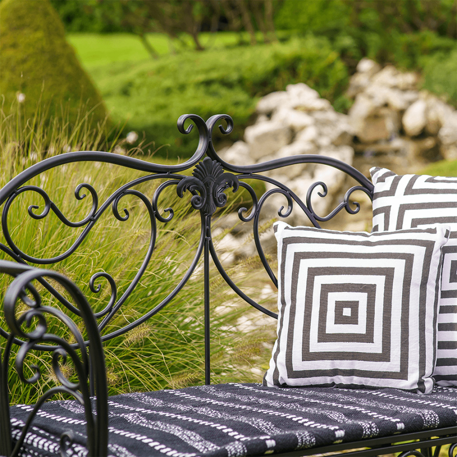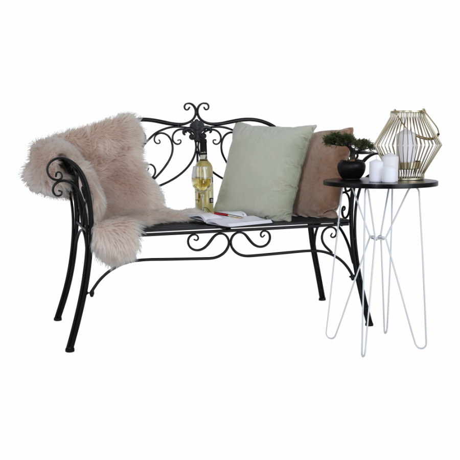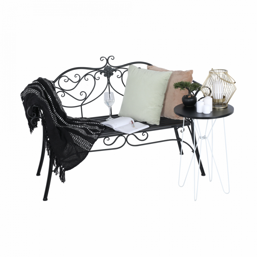 Materiál: kov Barva: černá Rozměry (ŠxHxV): 131x49x89 cm Výška sedu: 43 cm Hloubka sedu: 42 cm Šířka sedu: 98,5 cm Nosnost: 150 kg Dodávané bez polštářů romantický vzhled S ozdobnými prvky Dodávané v demontu
