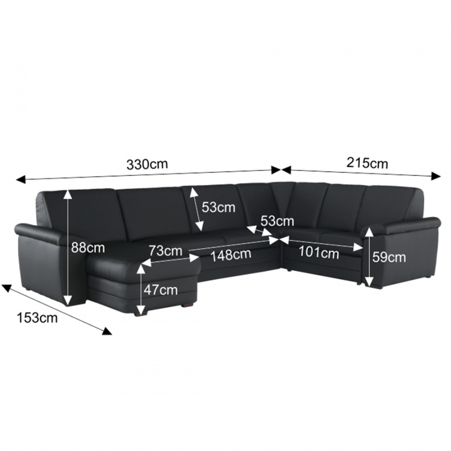 Rozměry (ŠxVxH): 330x88x215 / 153 cm,