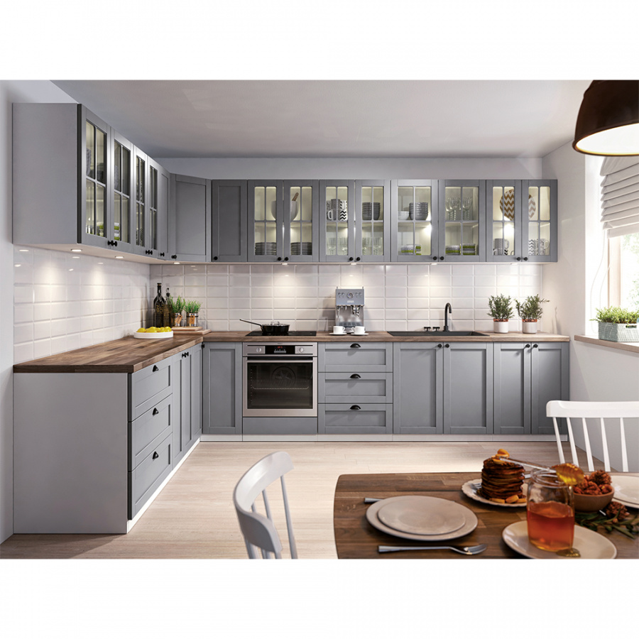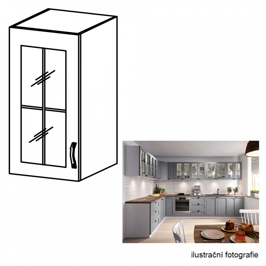 Cena sektorových skříněk je uváděna bez pracovní desky a spodní lišty. Cena za pracovní desku Porterhause tmavý je 1.180 Kč / bm - tloušťka 38 mm. možnost