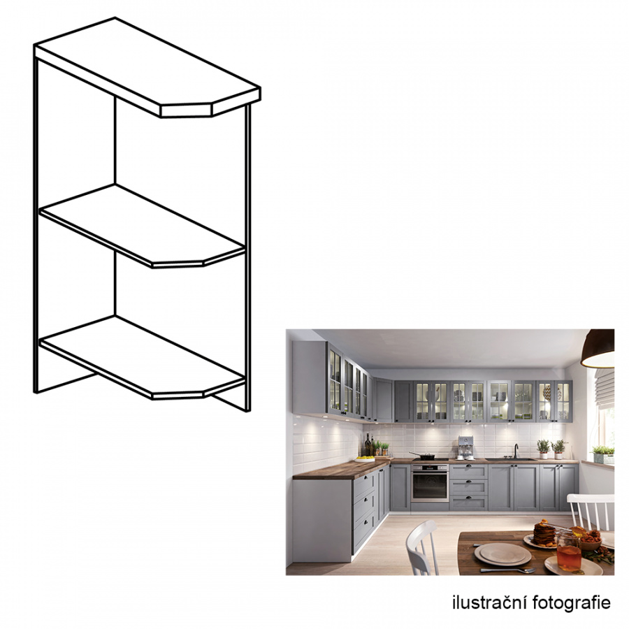Cena sektorových skříněk je uváděna bez pracovní desky a spodní lišty. Cena za pracovní desku Porterhause tmavý je 1.180 Kč / bm - tloušťka 38 mm. možnost
