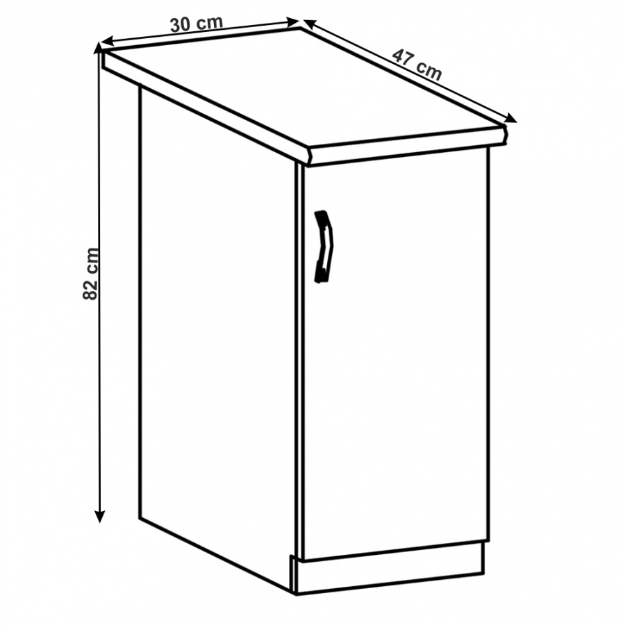Materiál korpus: DTD laminovaná Barva: bílá Materiál dvířka: MDF Barva: šedá matná Rozměry (ŠxHxV): 30x47x82 cm Tloušťka materiálu: 15 mm S dvířky S ozdobnou úchytkou S policí pravé provedení Bez pracovní desky Bez spodní lišty Dodávané v demonte Cena sektorových skříněk je uváděna bez pracovní desky a spodní lišty. Cena za pracovní desku Porterhause tmavý je 1.180 Kč / bm - tloušťka 38 mm. možnost dokoupení spodní lišty bílá v rozměru 1 m za cenu 180 Kč nebo v rozměru 2 m za cenu 270 Kč. Ke každé dolní skříňce je třeba doobjednat 2 ks úchytů na sokl - cena 20 Kč / 2 ks. Možnost dokoupení univerzálního P / Ľ dřezu v ceně 1.990 Kč.