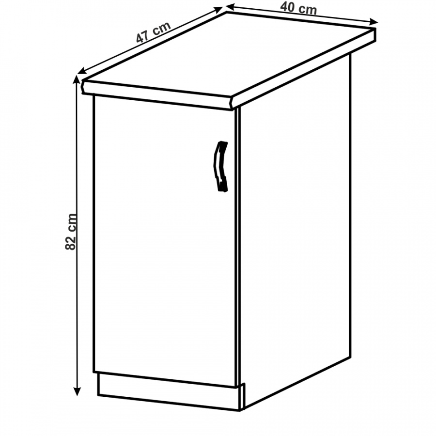 Materiál korpus: DTD laminovaná Barva: bílá Materiál dvířka: MDF Barva: šedá matná Rozměry (ŠxHxV): 40x47x82 cm Tloušťka materiálu: 15 mm S dvířky S ozdobnou úchytkou S policí levé provedení Bez pracovní desky Bez spodní lišty Dodávané v demonte Cena sektorových skříněk je uváděna bez pracovní desky a spodní lišty. Cena za pracovní desku Porterhause tmavý je 1.180 Kč / bm - tloušťka 38 mm. možnost dokoupení spodní lišty bílá v rozměru 1 m za cenu 180 Kč nebo v rozměru 2 m za cenu 270 Kč. Ke každé dolní skříňce je třeba doobjednat 2 ks úchytů na sokl - cena 20 Kč / 2 ks. Možnost dokoupení univerzálního P / Ľ dřezu v ceně 1.990 Kč.